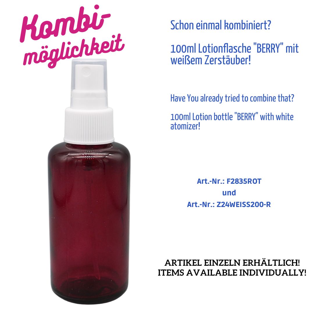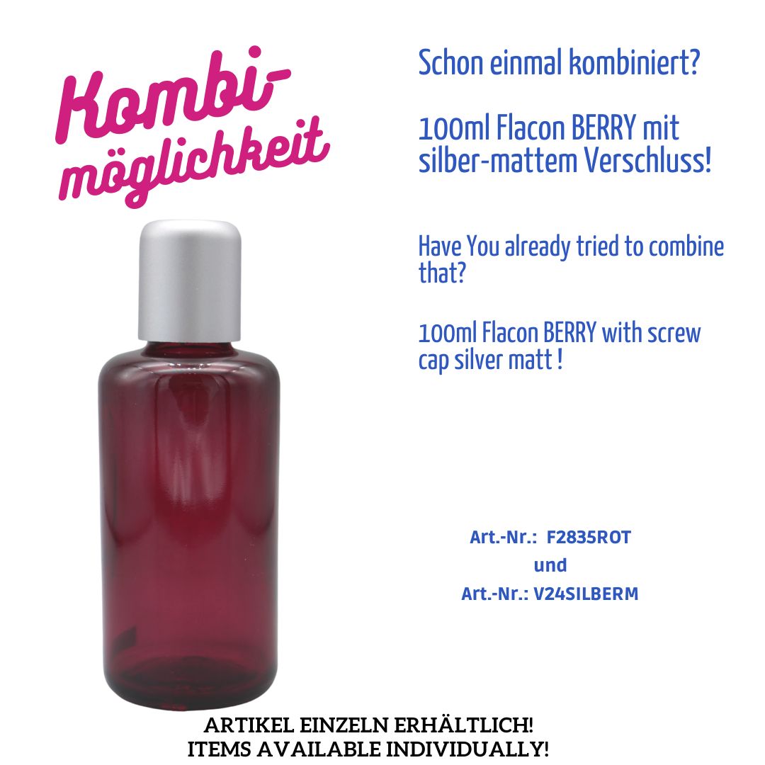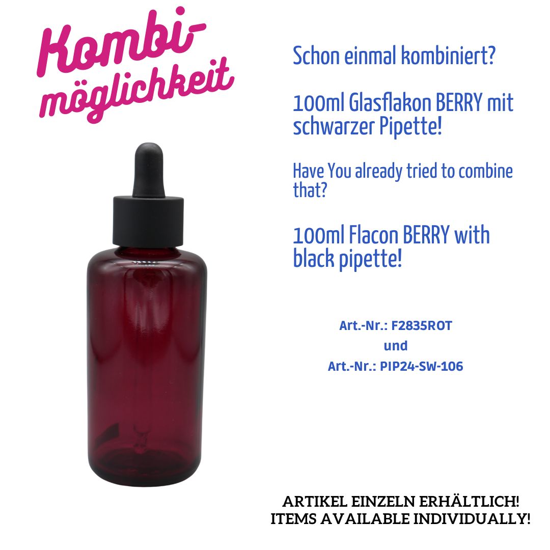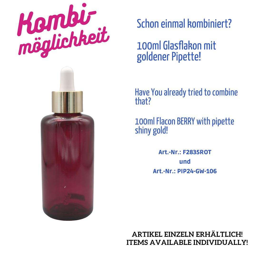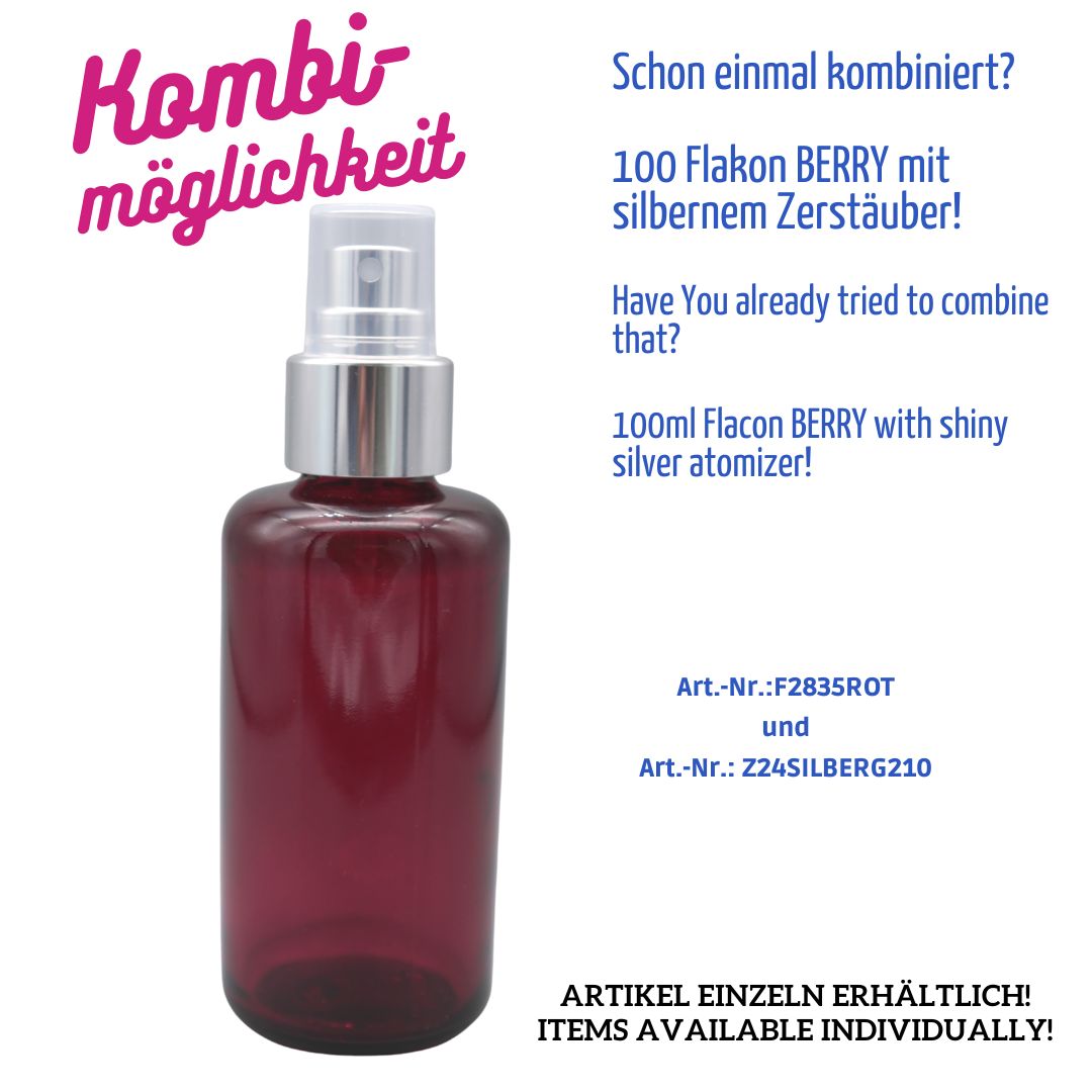 100ml – Glas Flakon – F2835 – rot – besprüht – abgerundete Schulter – Gewinde: 24/410 GCMI – *Serie-BERRY*