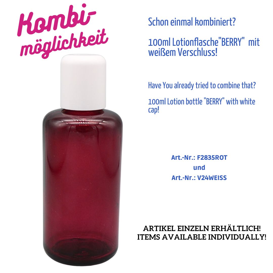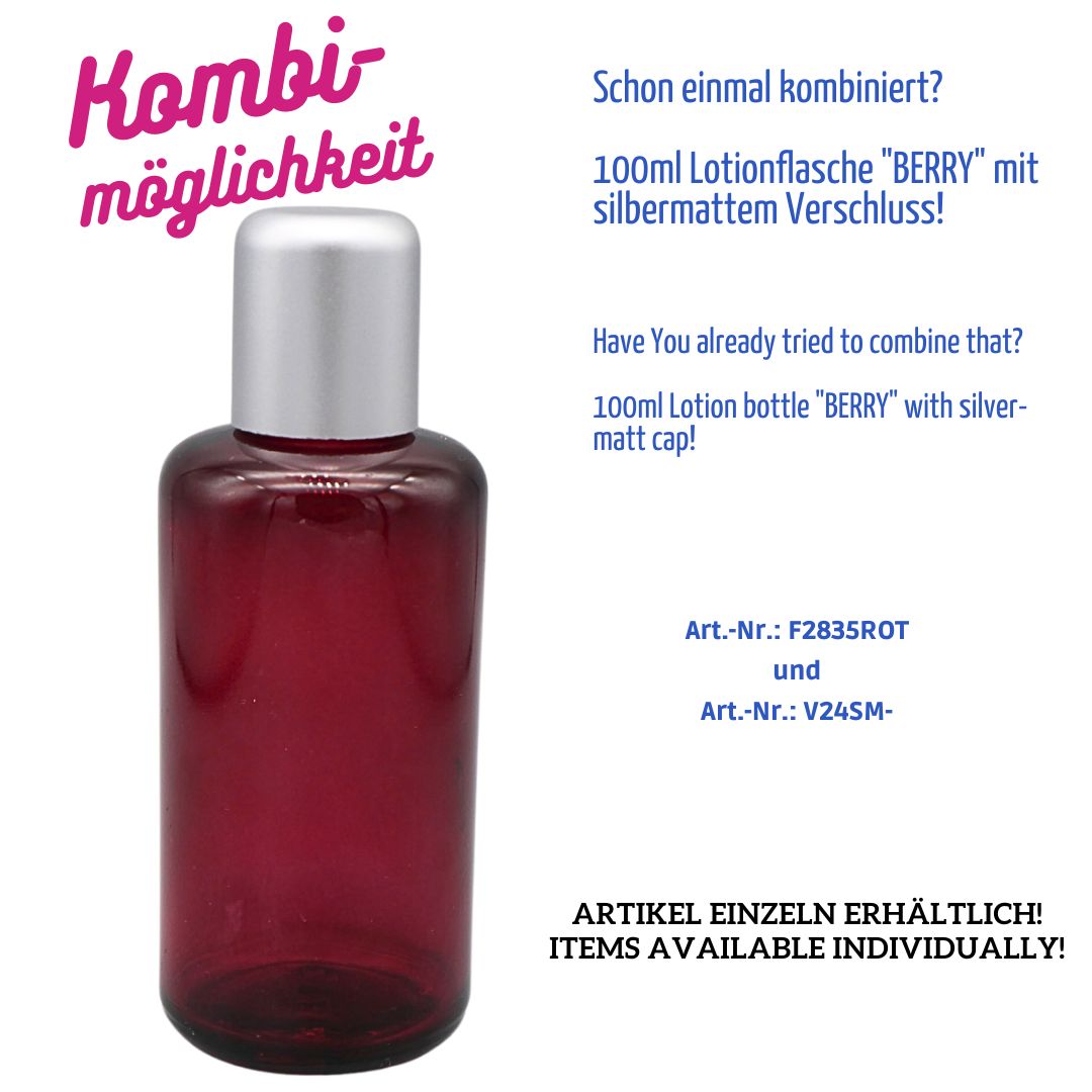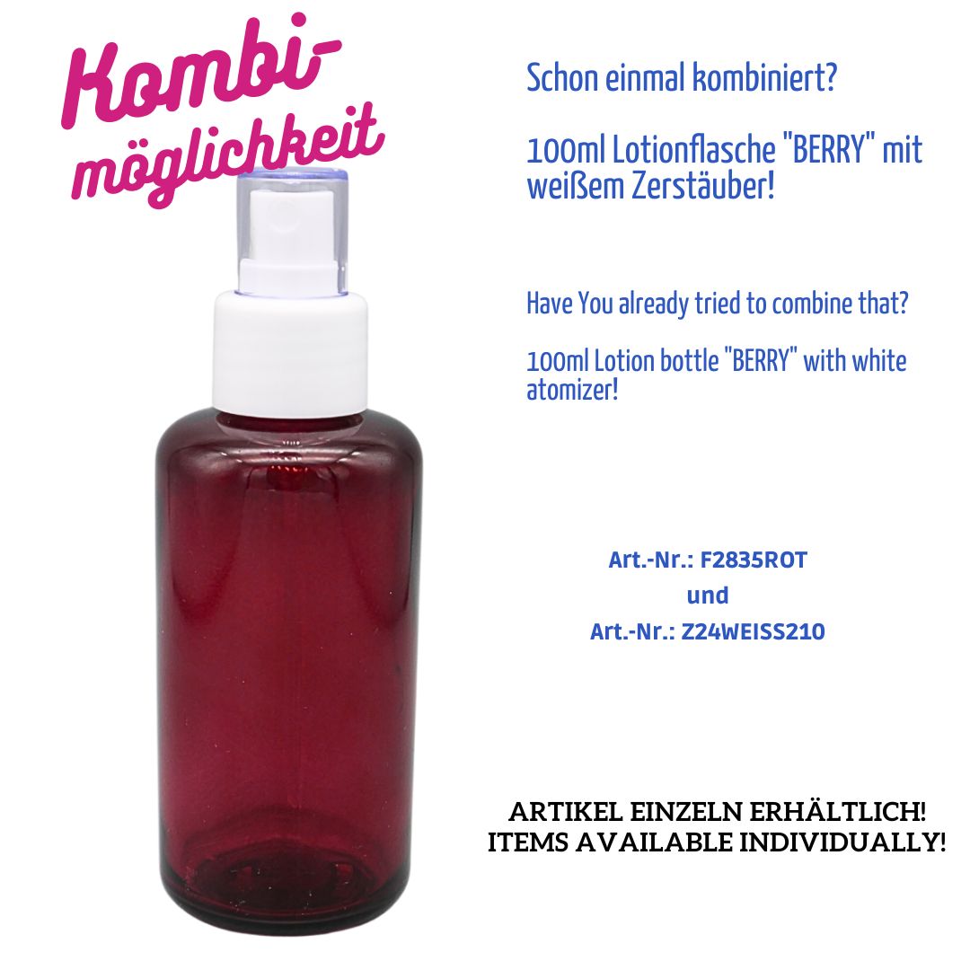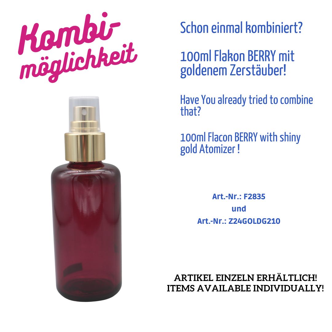 100ml – Glas Flakon – F2835 – rot – besprüht – abgerundete Schulter – Gewinde: 24/410 GCMI – *Serie-BERRY*