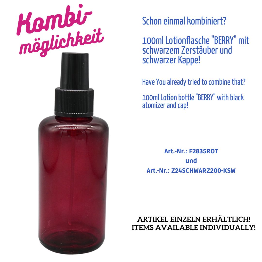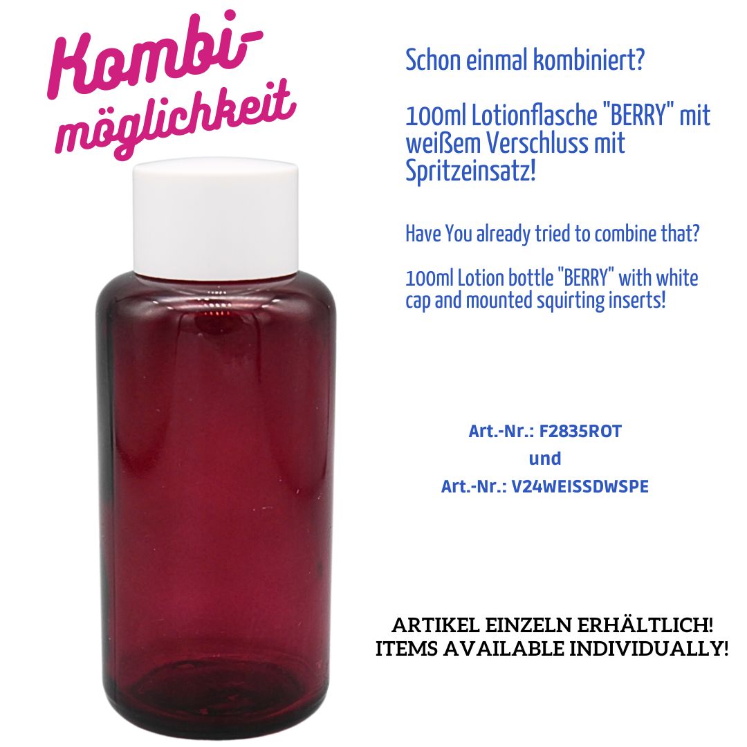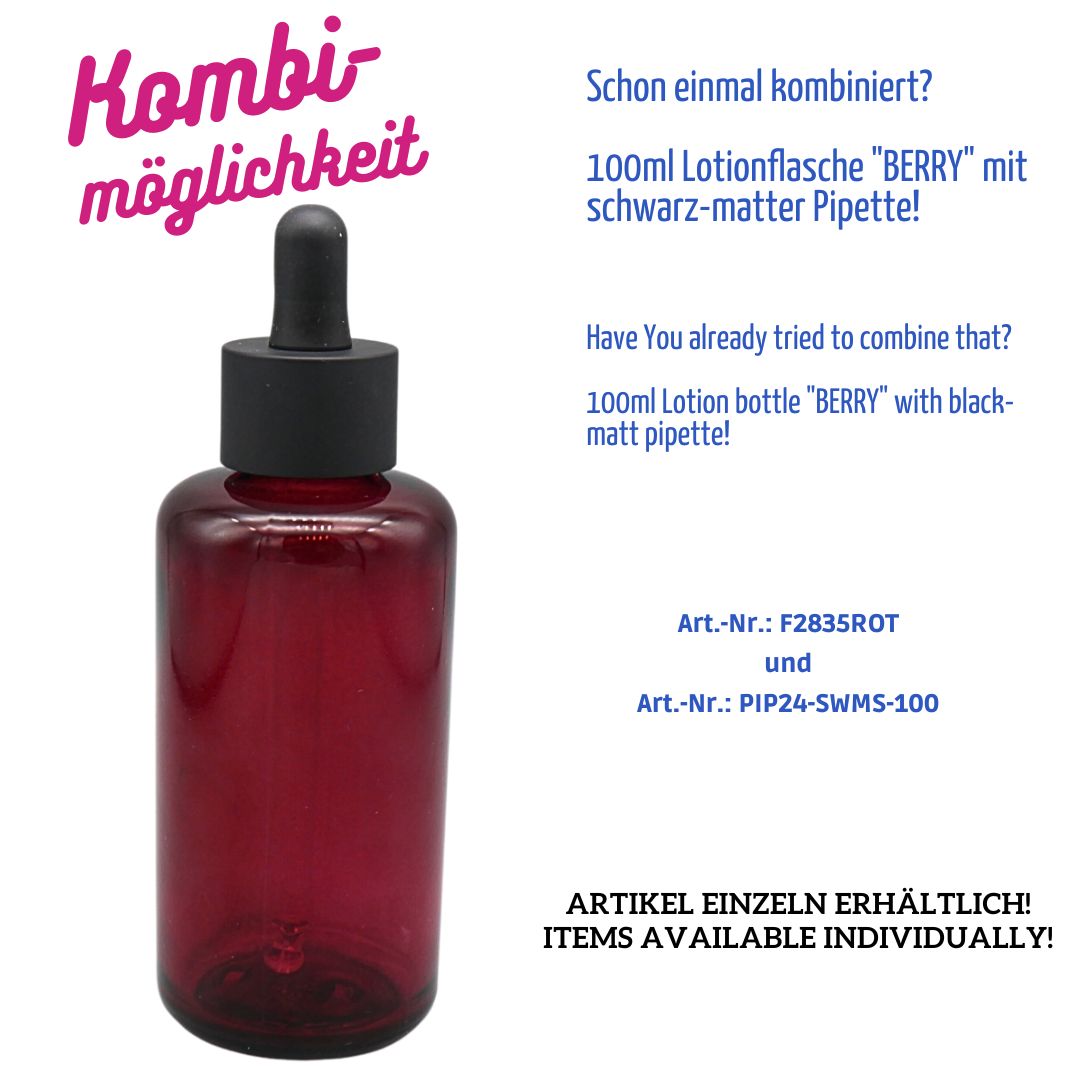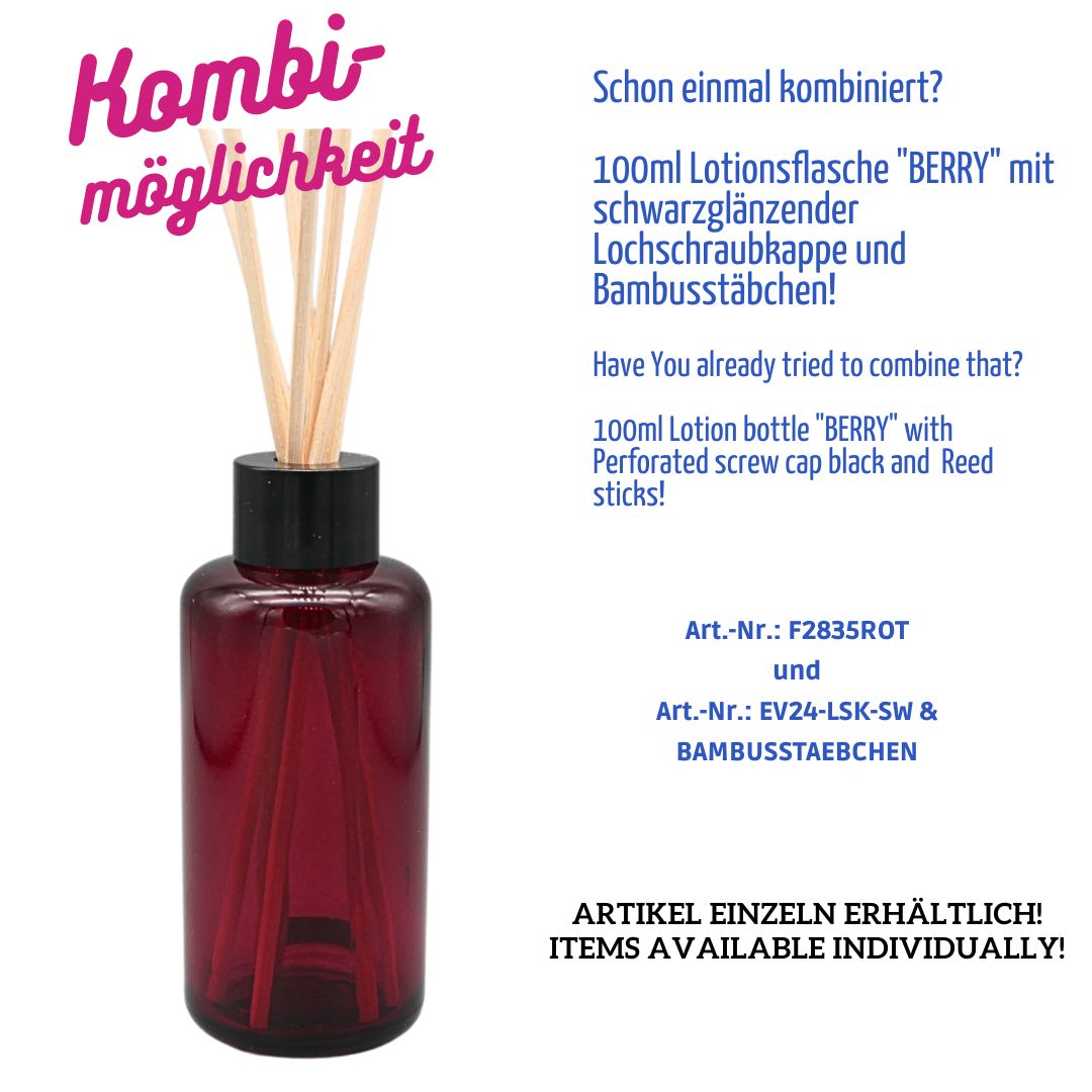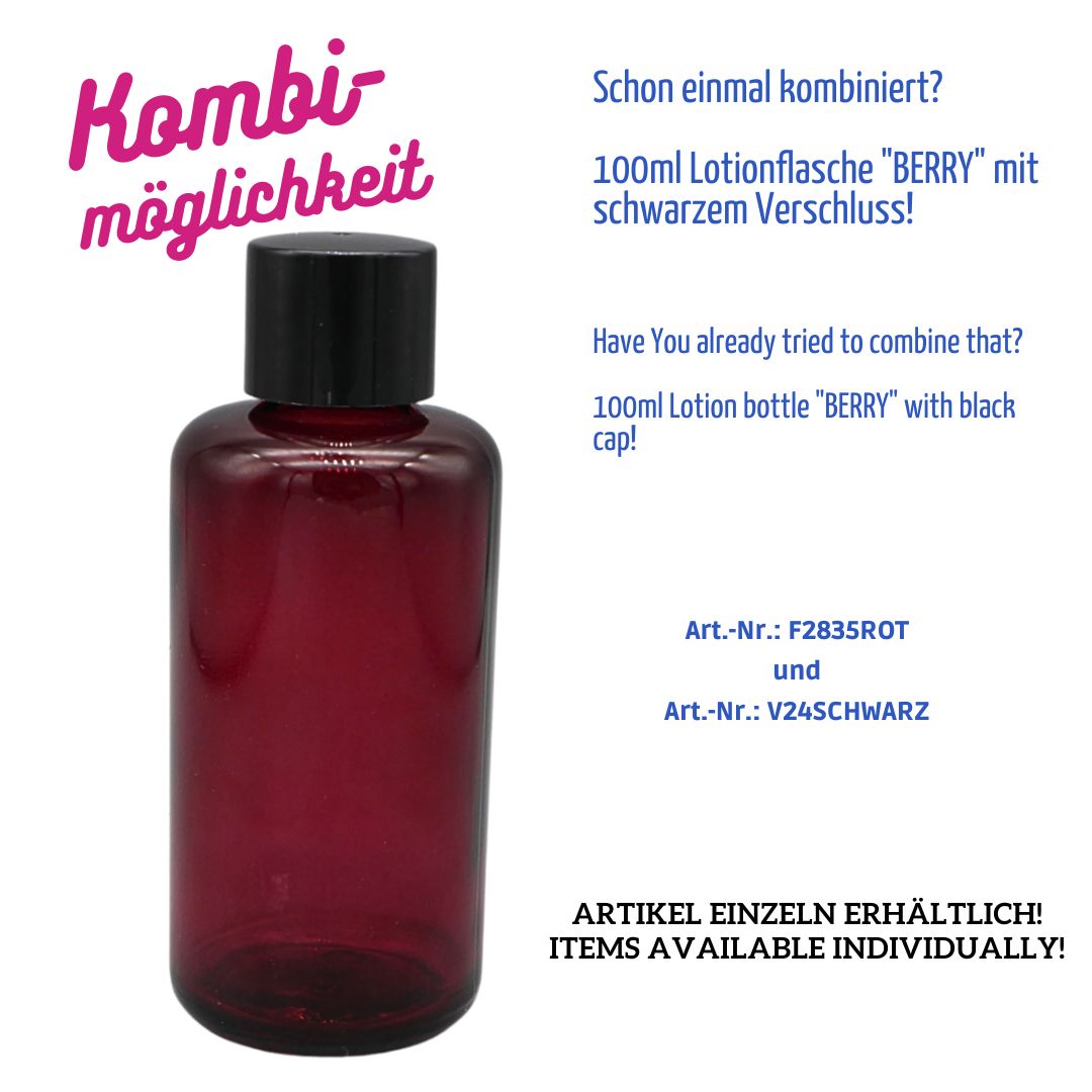 100ml – Glas Flakon – F2835 – rot – besprüht – abgerundete Schulter – Gewinde: 24/410 GCMI – *Serie-BERRY*