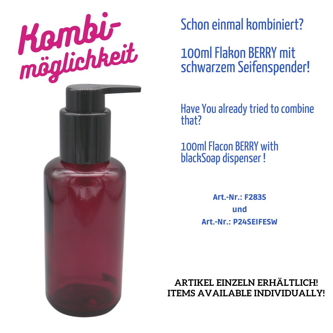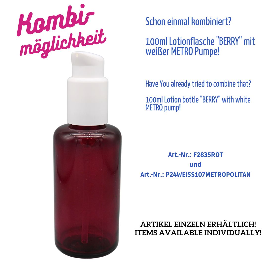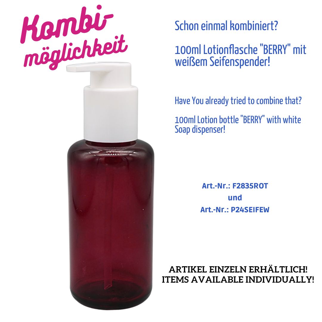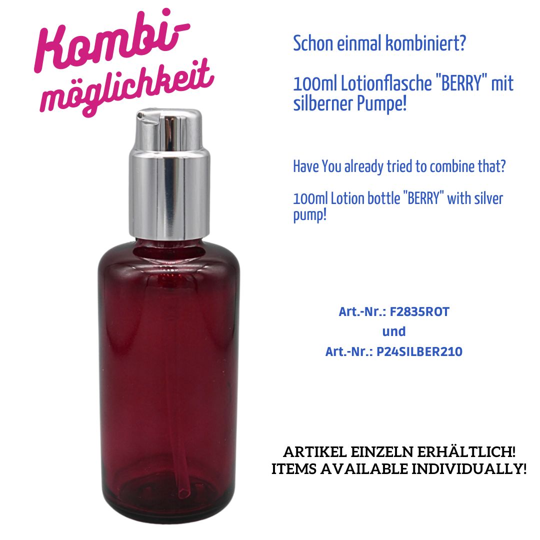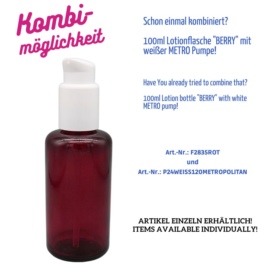 100ml – Glas Flakon – F2835 – rot – besprüht – abgerundete Schulter – Gewinde: 24/410 GCMI – *Serie-BERRY*