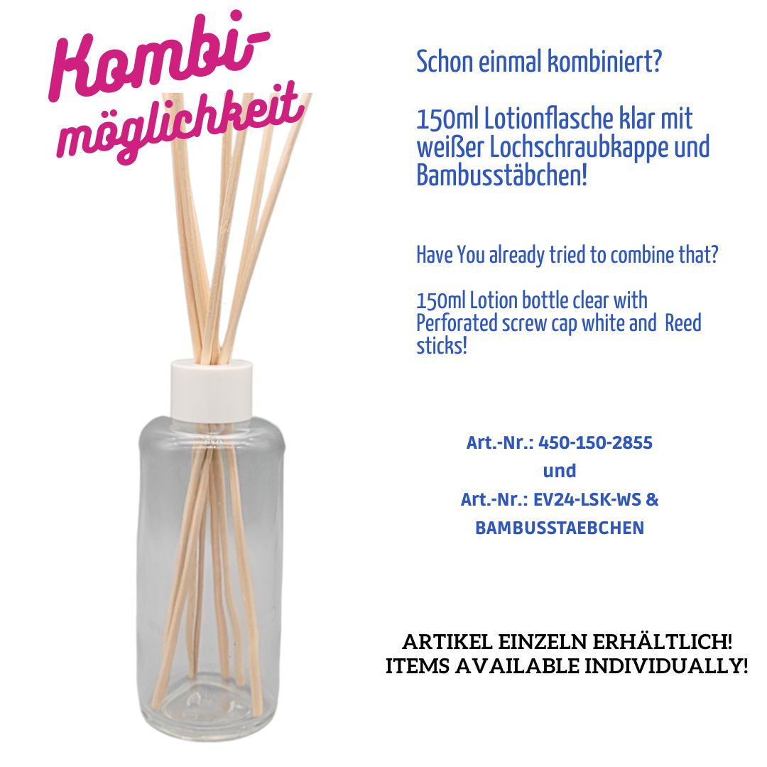 150ml – Lotionsflasche Luna – F2855 – Klarglas – rund – abgerundete Schulter – Gewinde: 24/410 GCMI – AQL-Werte: 0,01/0,65/1,5/6,5 – QKL 4