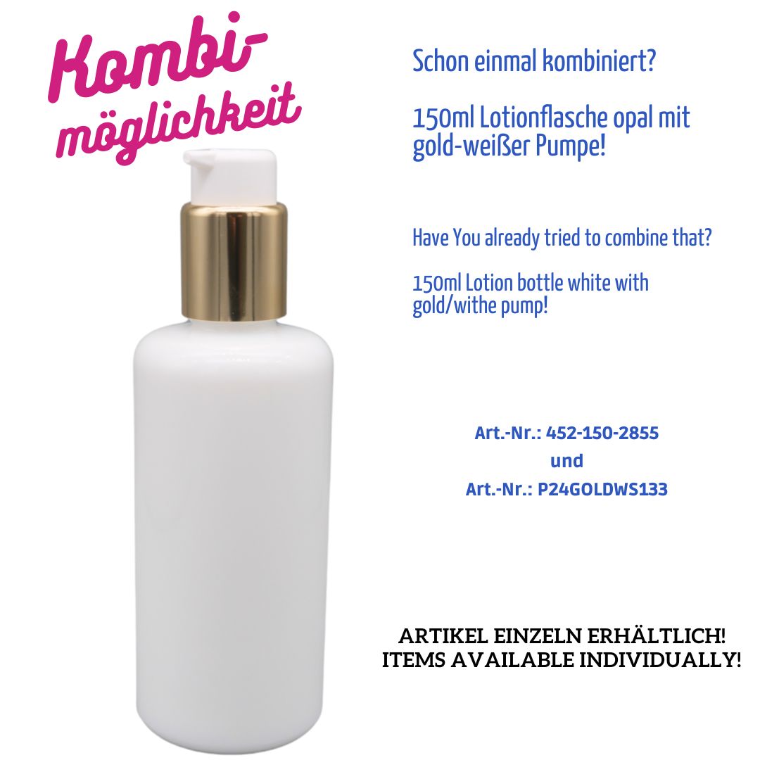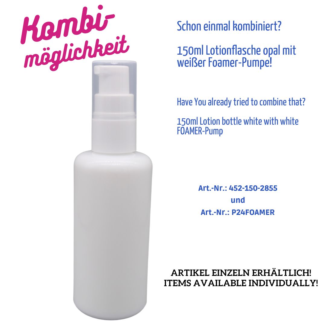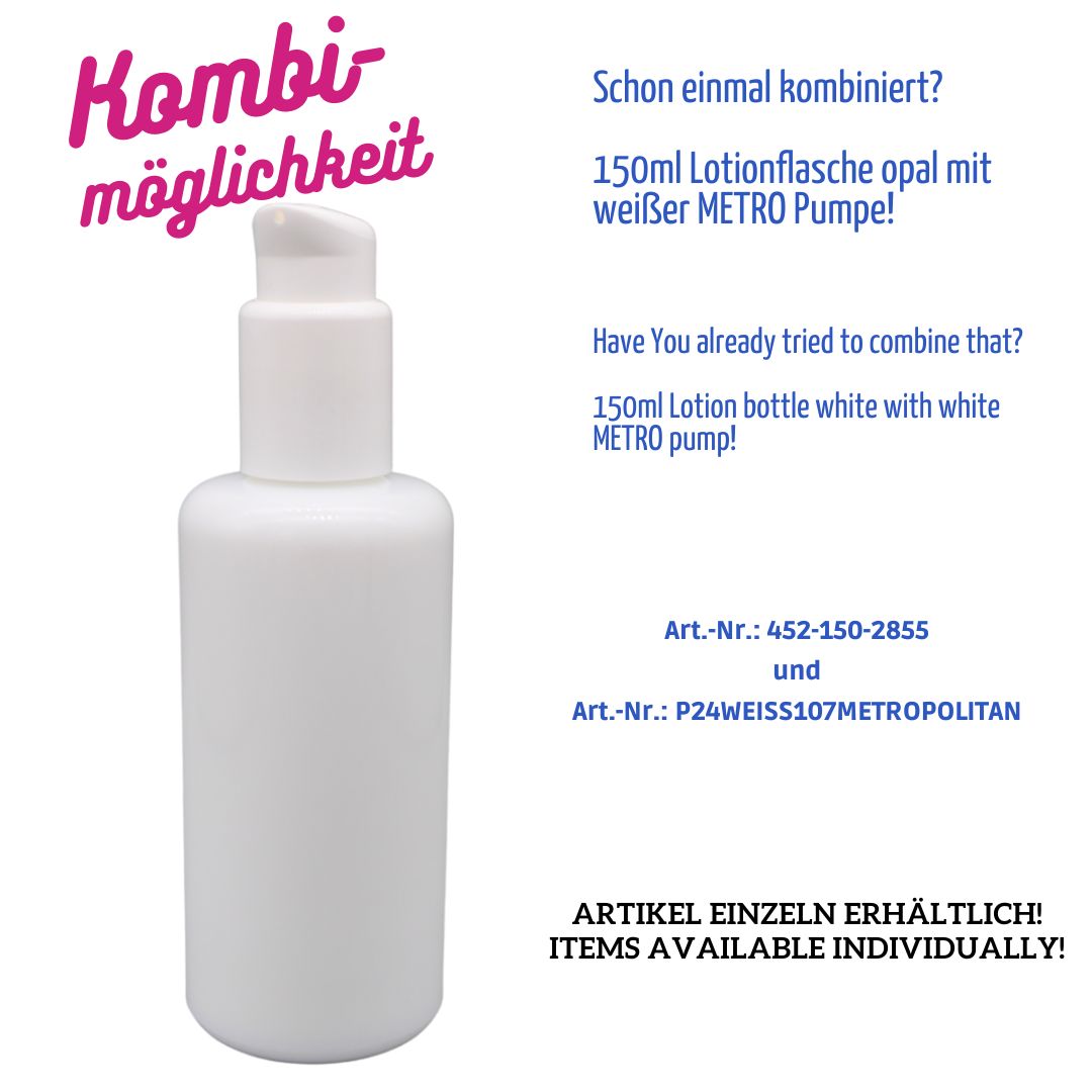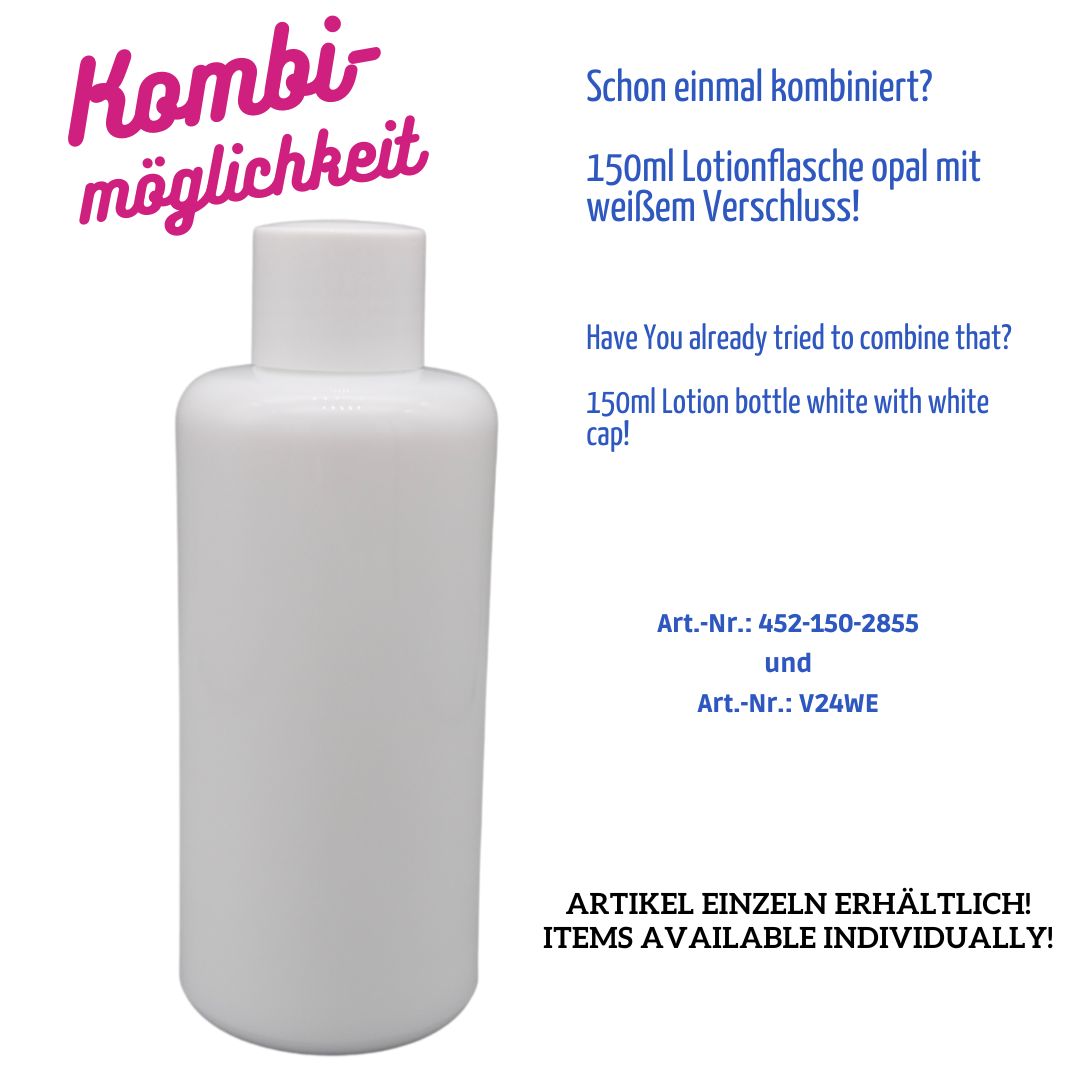150ml – Lotionsflasche Luna – F2855 – Opalglas – rund – abgerundete Schulter – Gewinde: 24/410 GCMI – AQL-Werte 0,15/1,5/4,0/6,5 – QKL 4