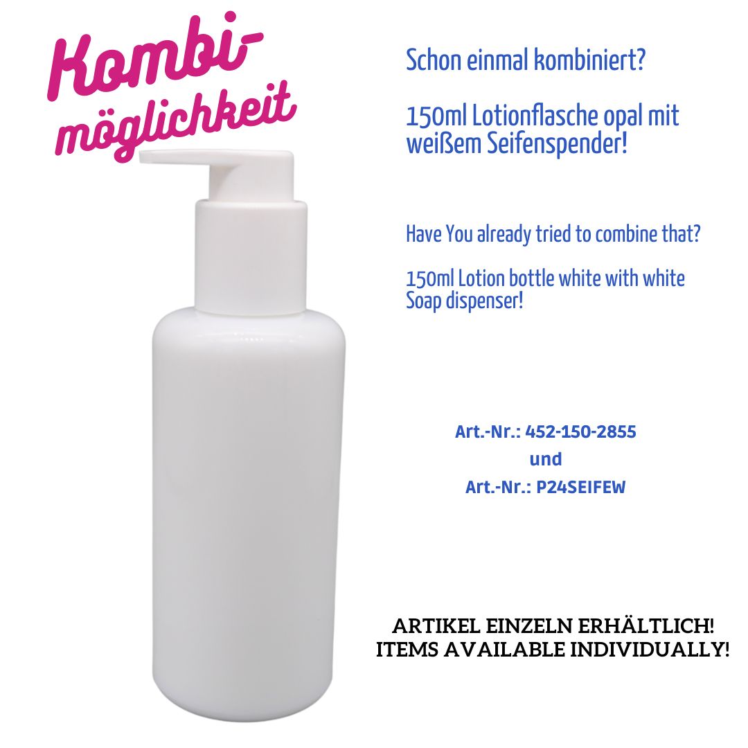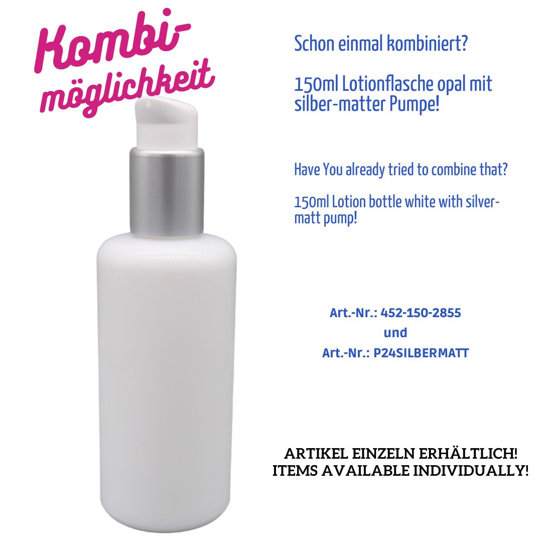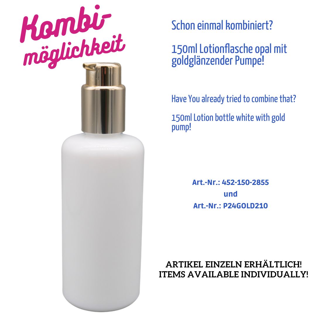 150ml – Lotionsflasche Luna – F2855 – Opalglas – rund – abgerundete Schulter – Gewinde: 24/410 GCMI – AQL-Werte 0,15/1,5/4,0/6,5 – QKL 4