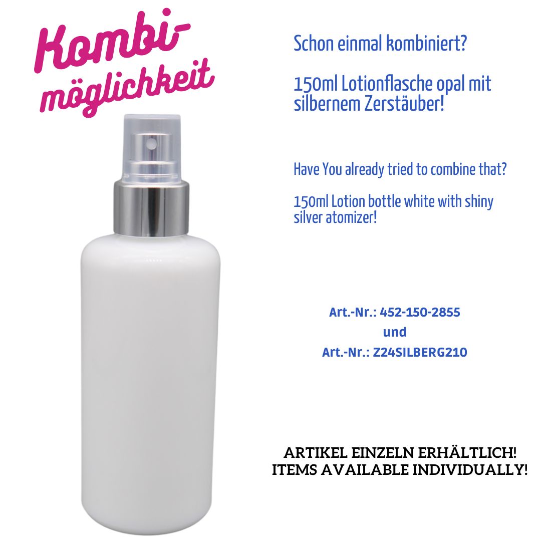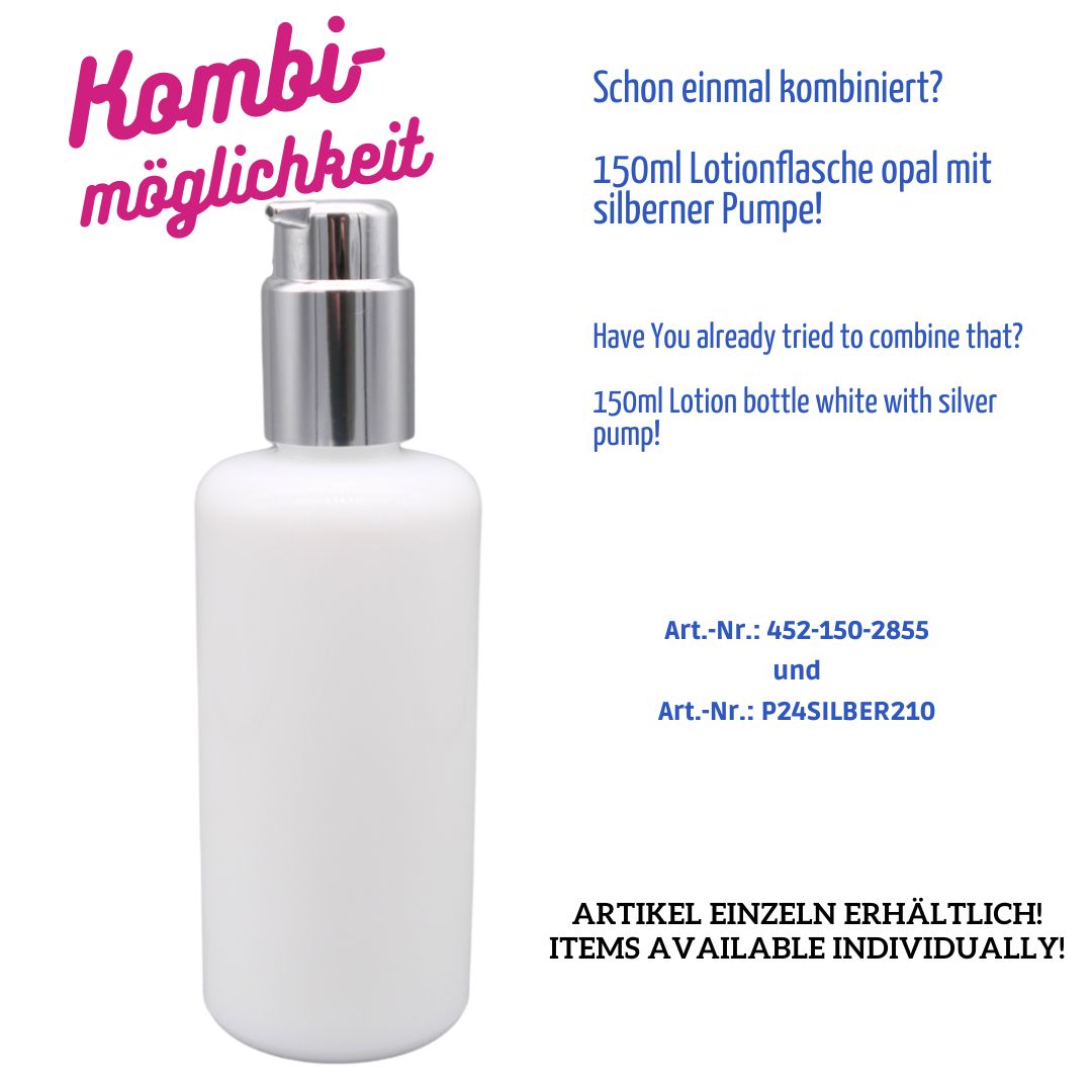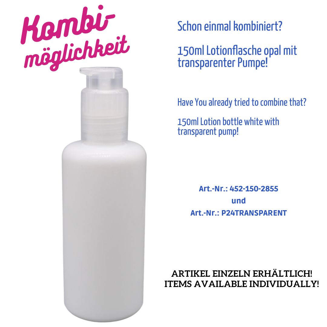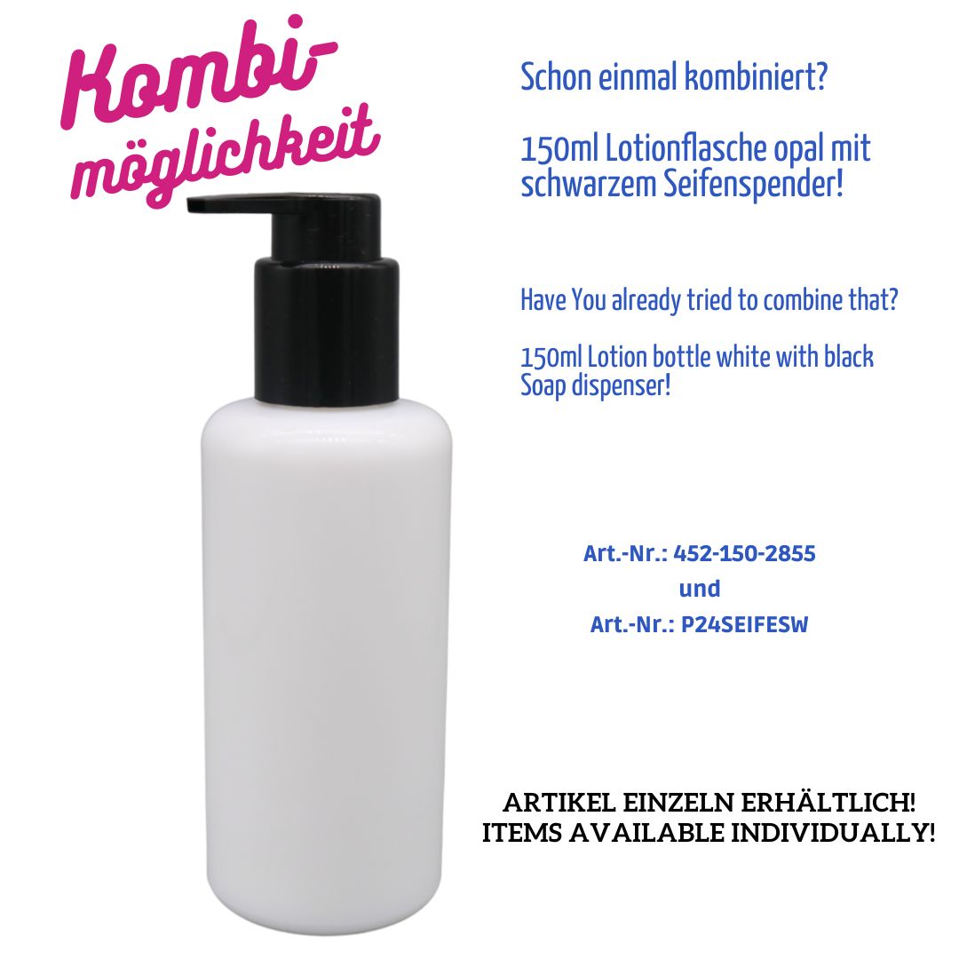 150ml – Lotionsflasche Luna – F2855 – Opalglas – rund – abgerundete Schulter – Gewinde: 24/410 GCMI – AQL-Werte 0,15/1,5/4,0/6,5 – QKL 4