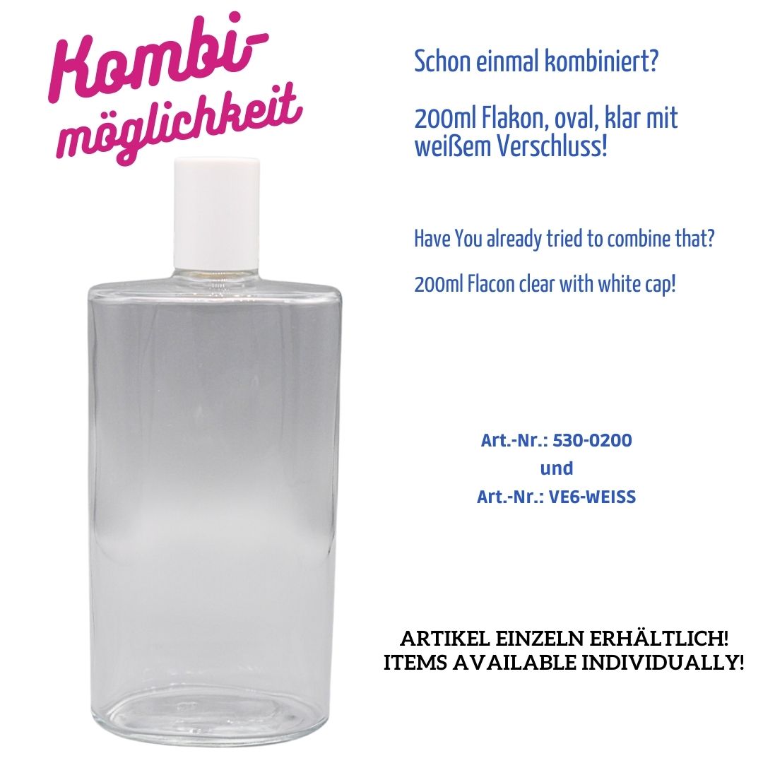 200ml – Flasche oval – Klarglas – Gewinde: E6