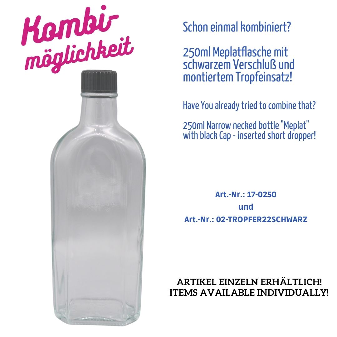 250 ml Enghalsflasche Meplat – klar, flach-eckig, Gewinde DIN22