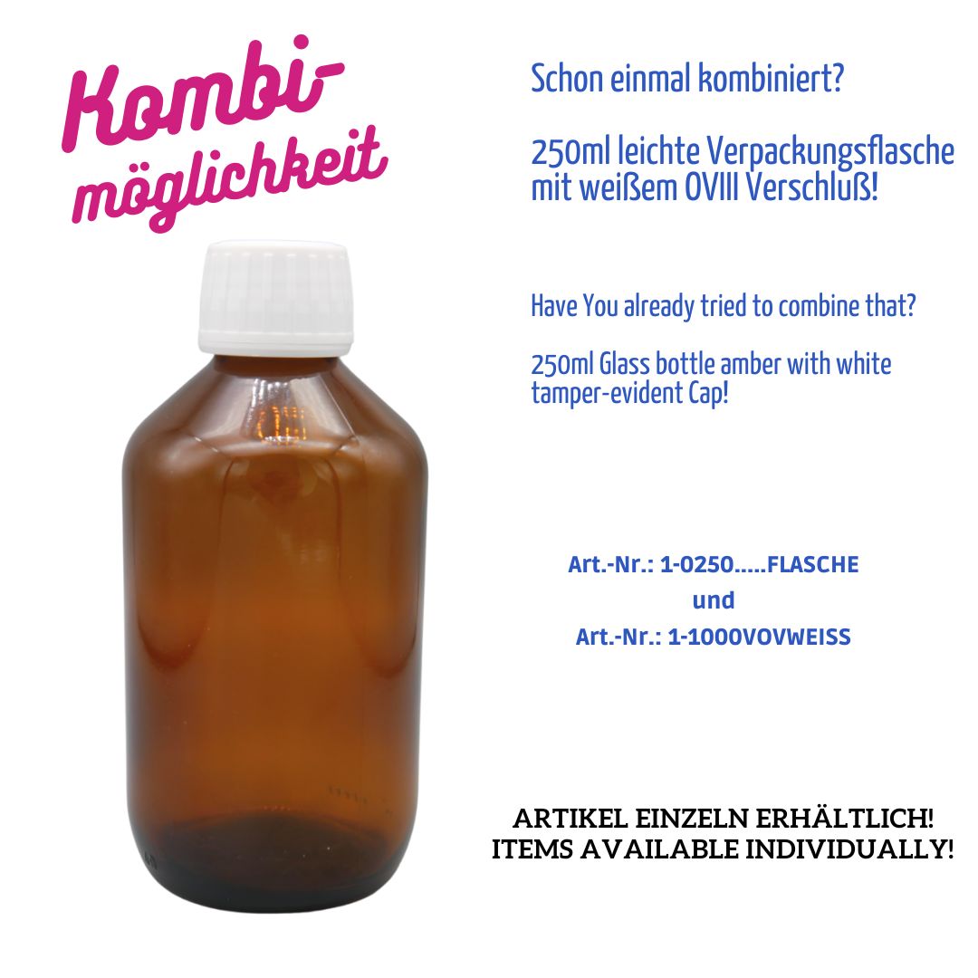 Diese 250 ml leichte Verpackungsflasche ist vielseitig einsetzbar und wird auch als Veral-, Sirup- oder Laborflasche bezeichnet. Sie ist ideal für die sichere Aufbewahrung und den Transport verschiedener Flüssigkeiten. Auch geeignet für kosmetische und pharmazeutische Füllgüter, Ätherische Öle, Extrakte, Essenzen, Küchenzutaten und vieles mehr.
