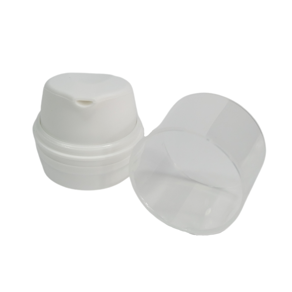 Airless-Dispenser BASIC WOMEN 30ml, Körper PP weiß, Kopfteil 30/50ml PP weiß mit mont. transparenter Kappe, Ausbringung