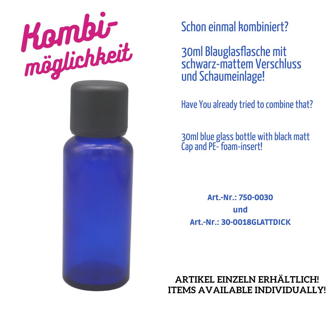 30ml – Blauglasflasche – Gewinde: DIN18 – kobaltblau – Kalt-Außenvergütung (RP40)