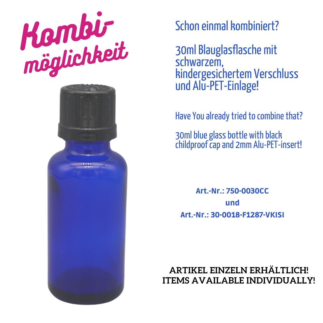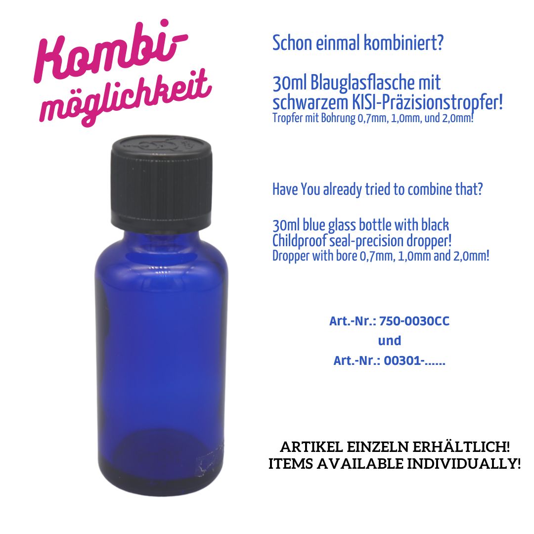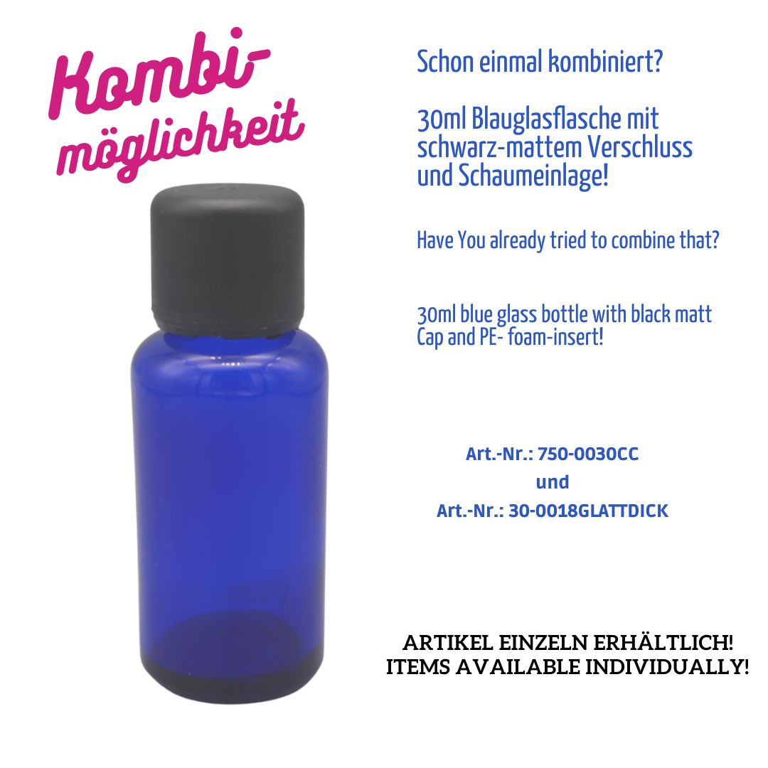 30ml Blauglasflasche – Gewinde: DIN18 – kobaldblau – CC