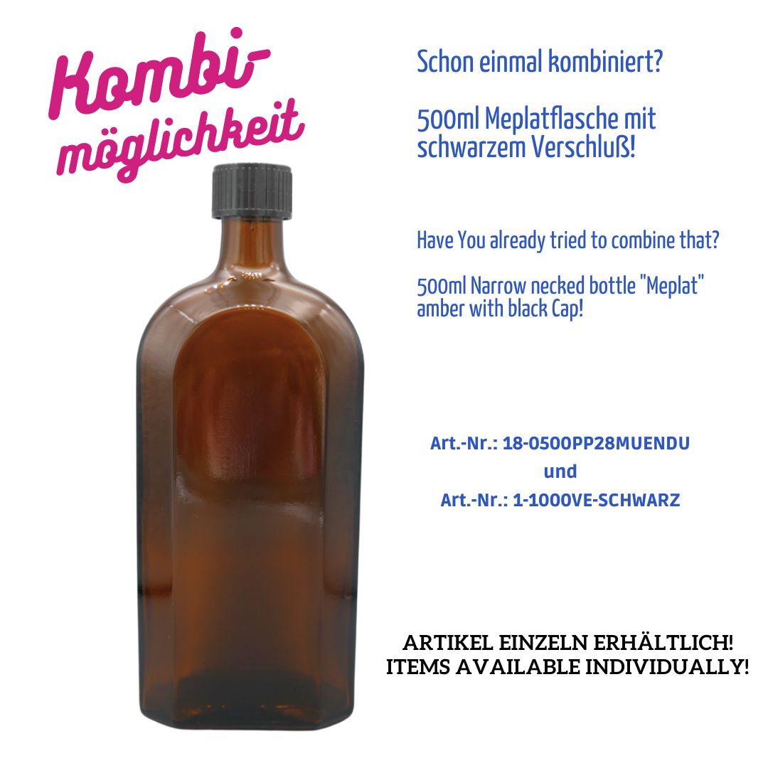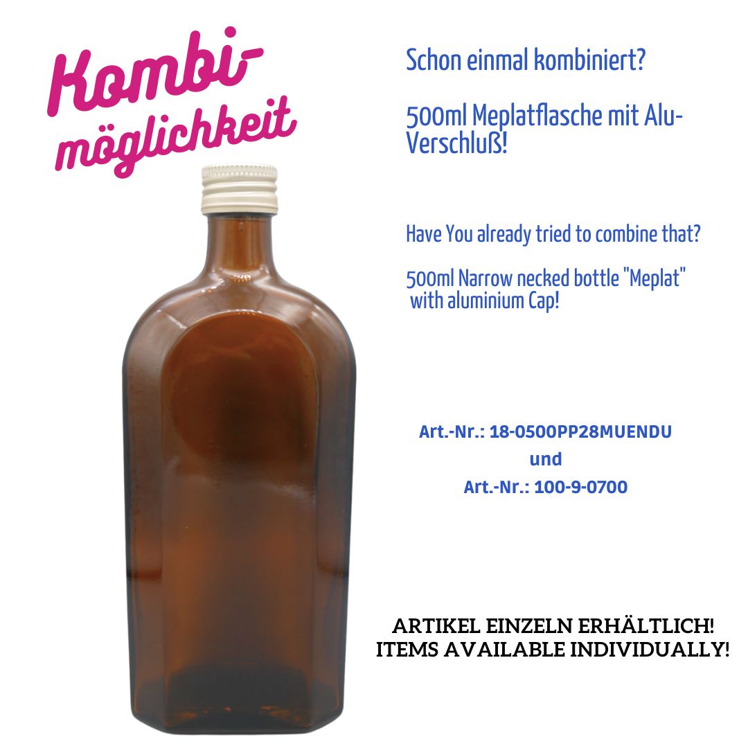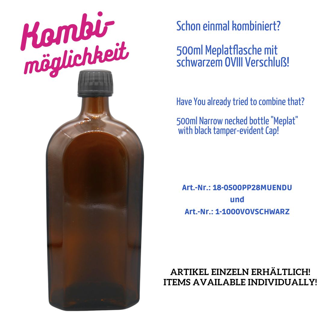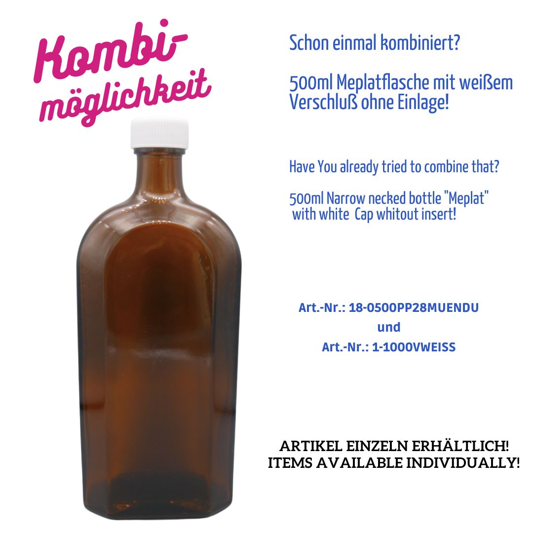 500 ml Enghalsflasche Meplat – braun, flach-eckig, Gewinde PP28