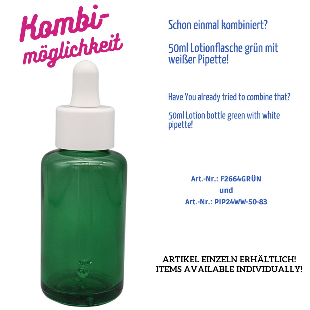 50ml – Glas Flakon – F2664 – grün – abgerundete Schulter – Gewinde: 24/410 GCMI – *Waldmeister-Serie*
