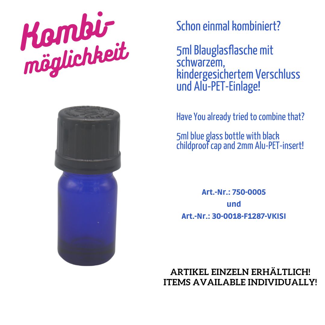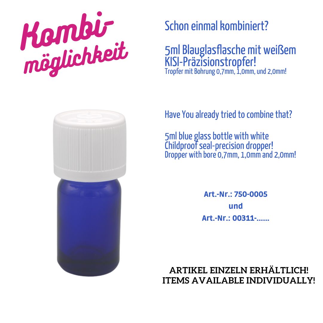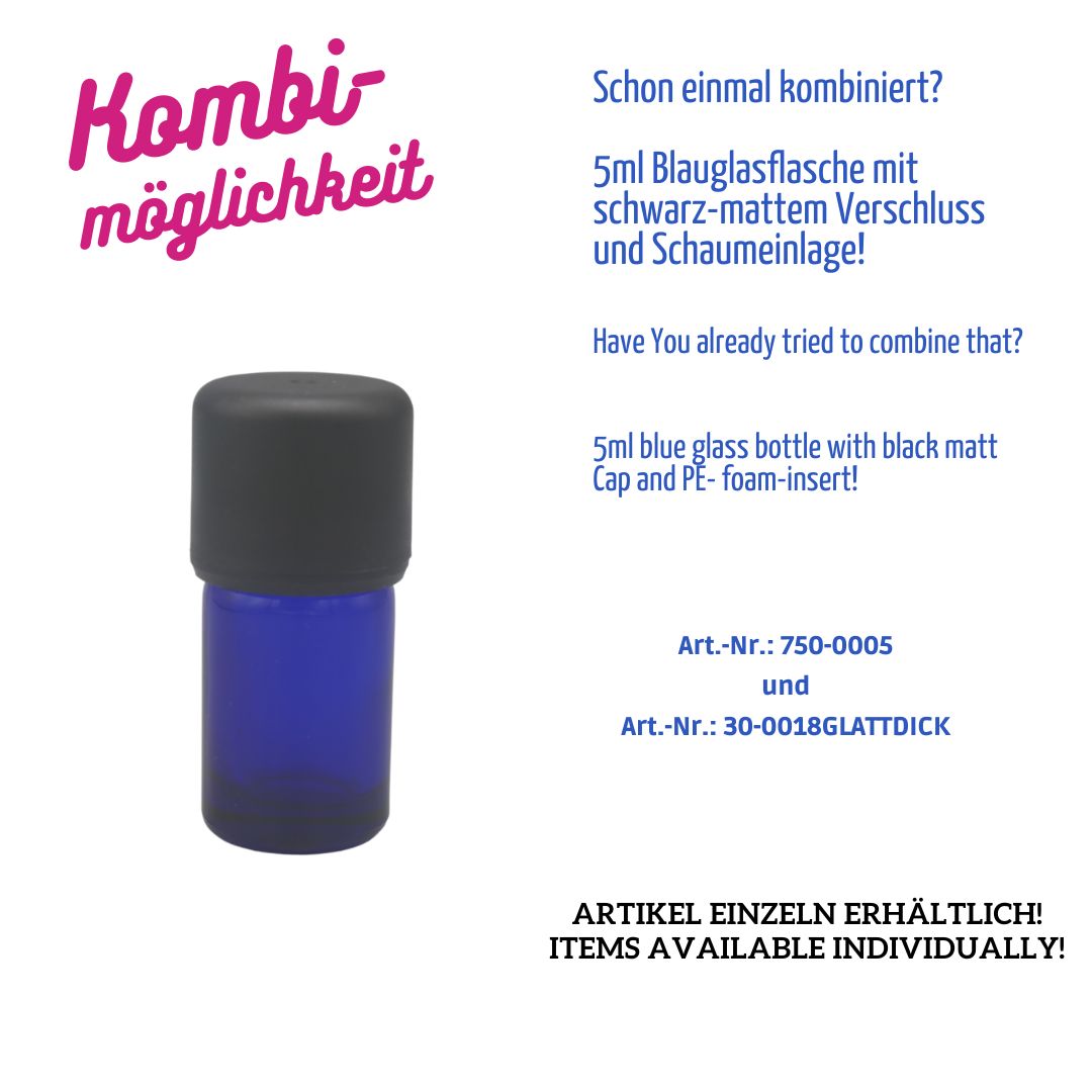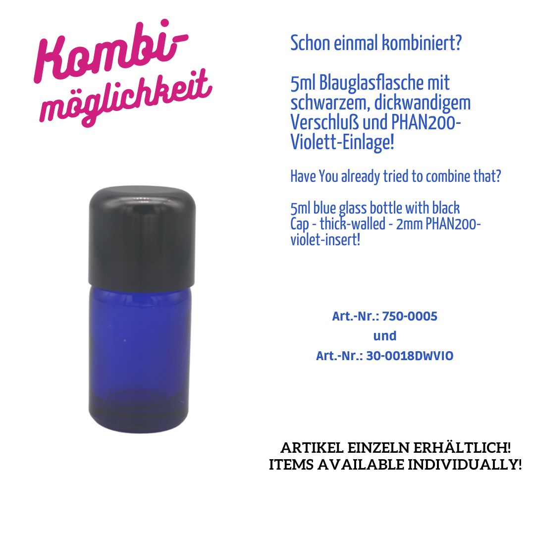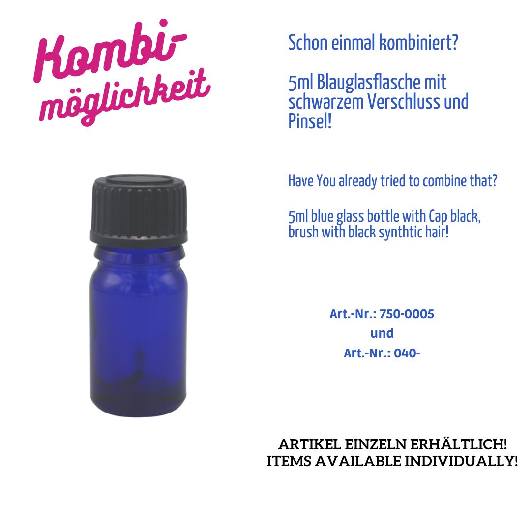 5ml – Blauglasflasche – Gewinde: DIN18 – kobaltblau – Kalt-Außenvergütung (RP40)
