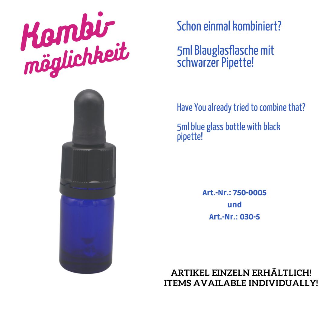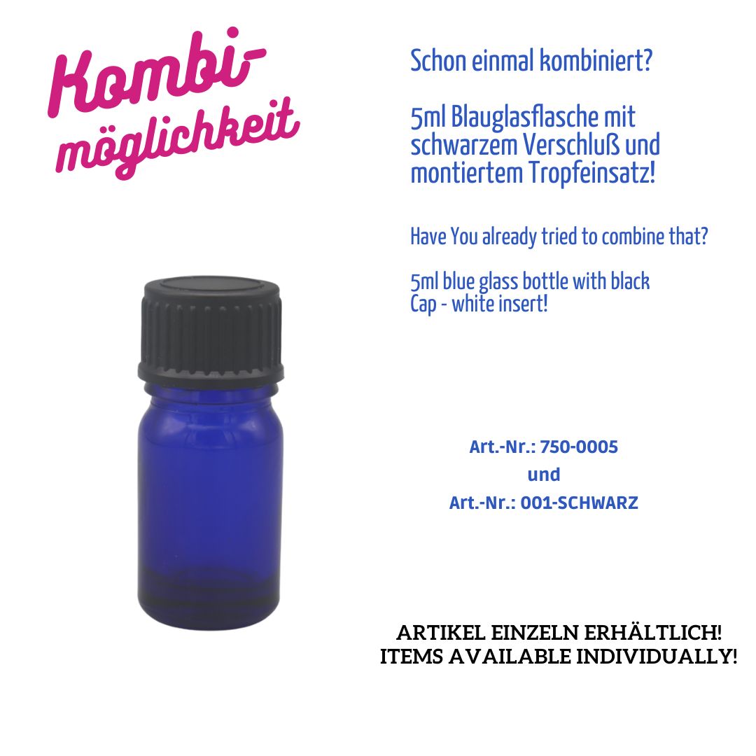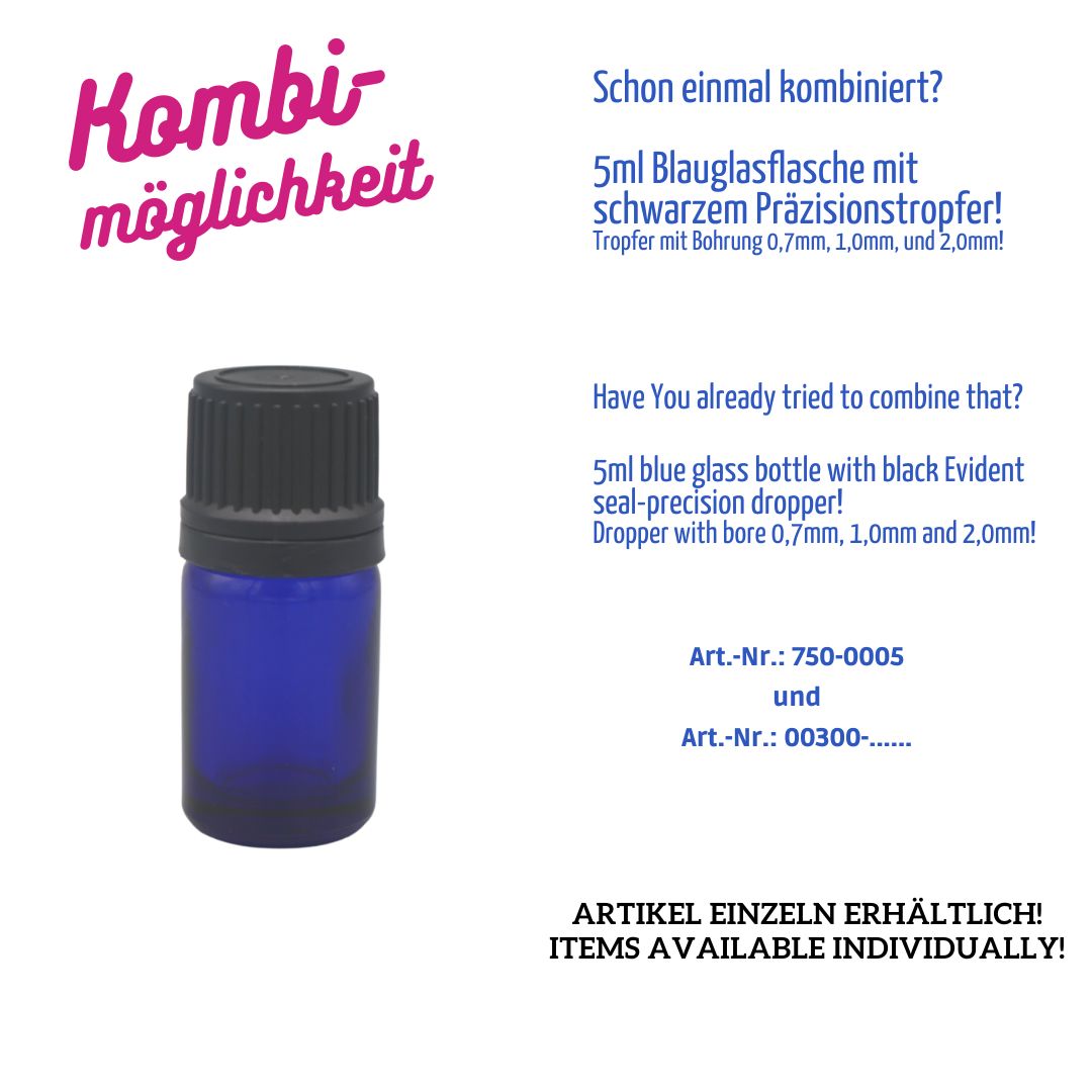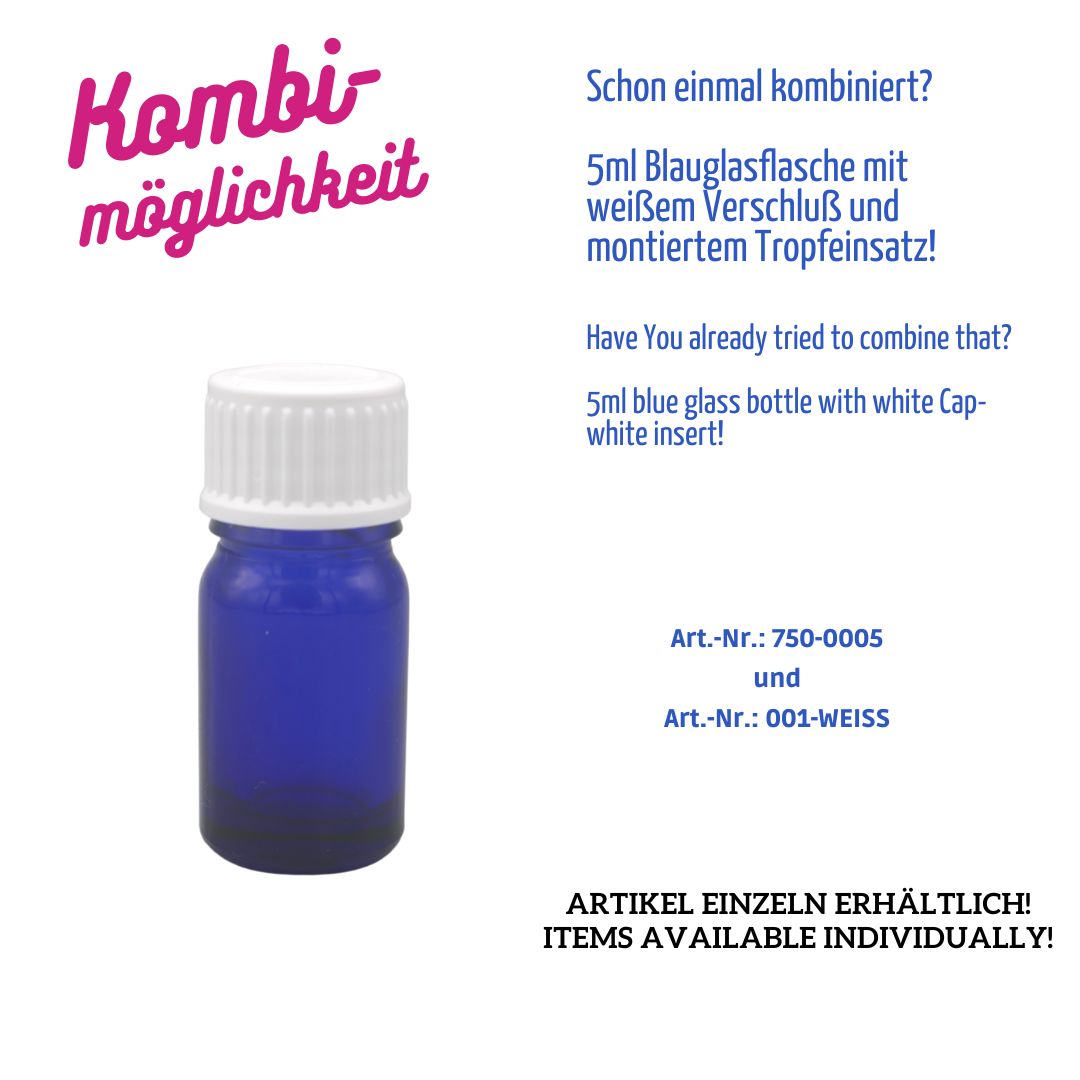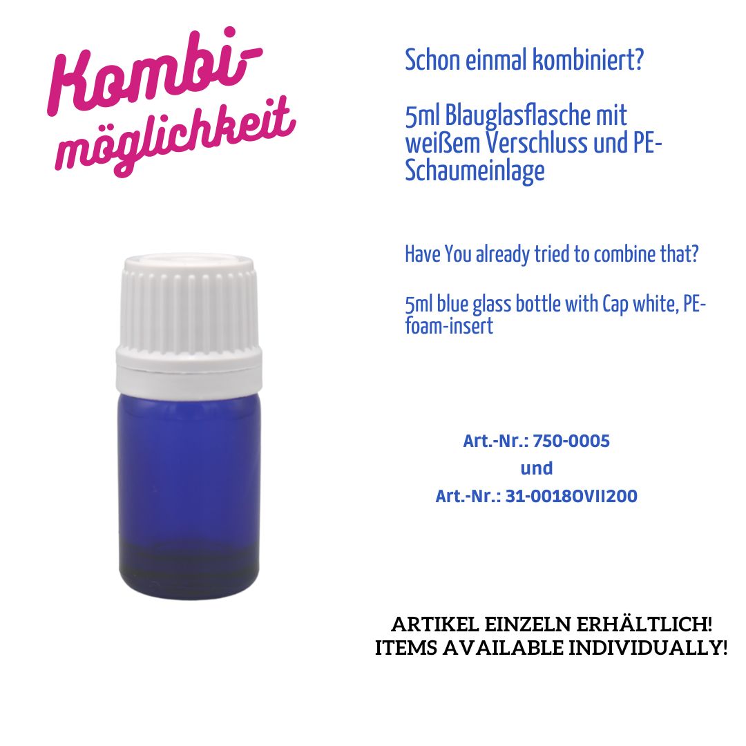 5ml – Blauglasflasche – Gewinde: DIN18 – kobaltblau – Kalt-Außenvergütung (RP40)