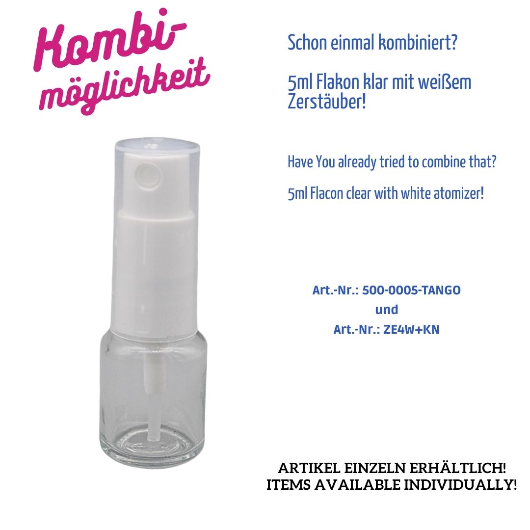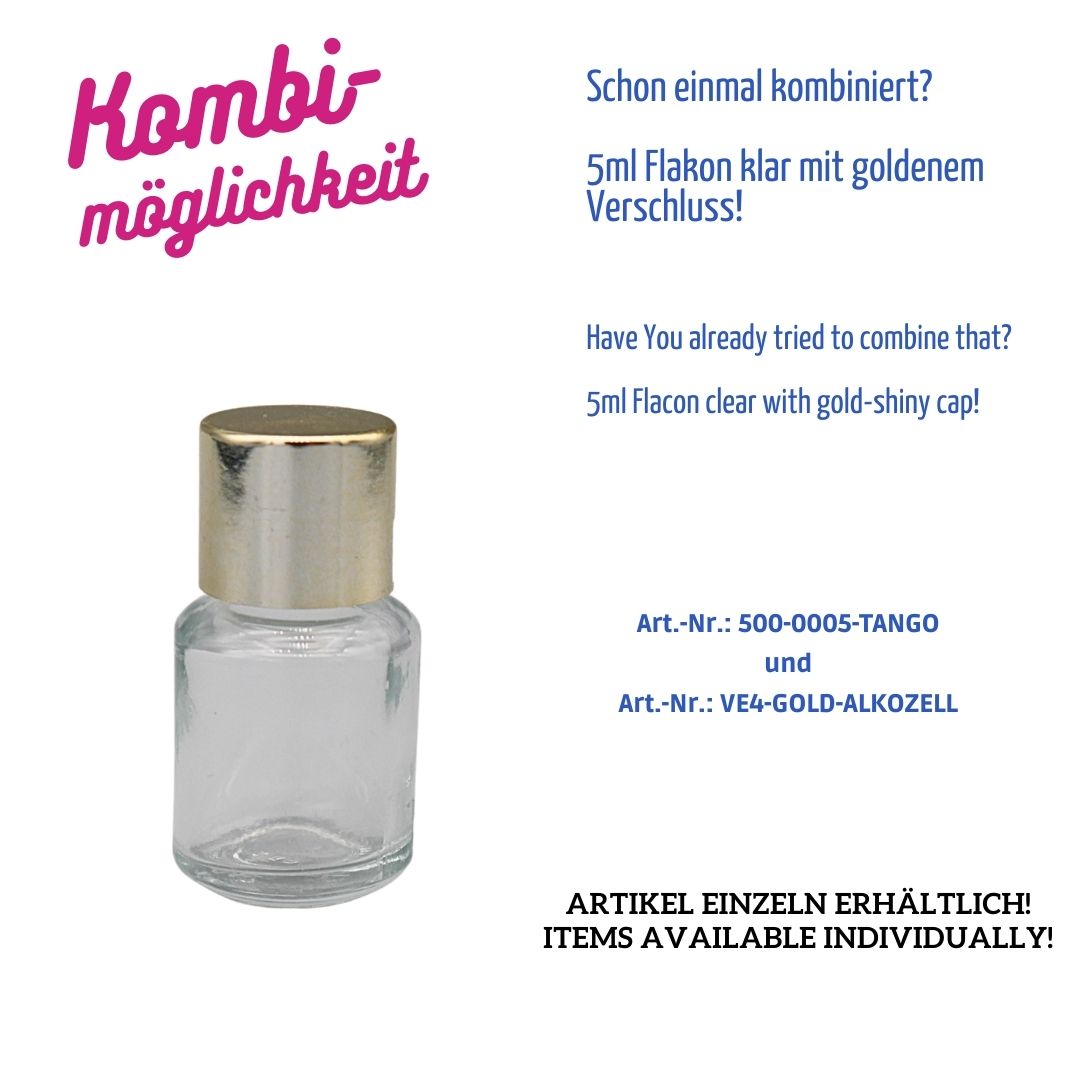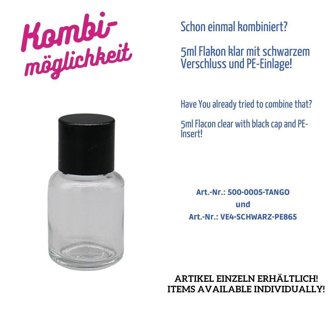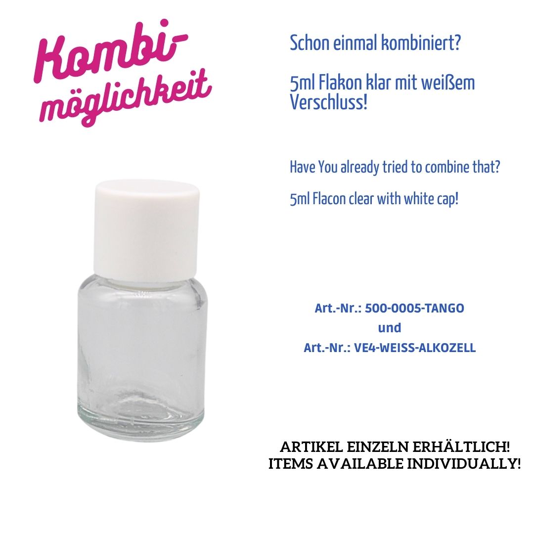 5ml – Flasche Tango – Klarglas – rund – Gewinde: E4