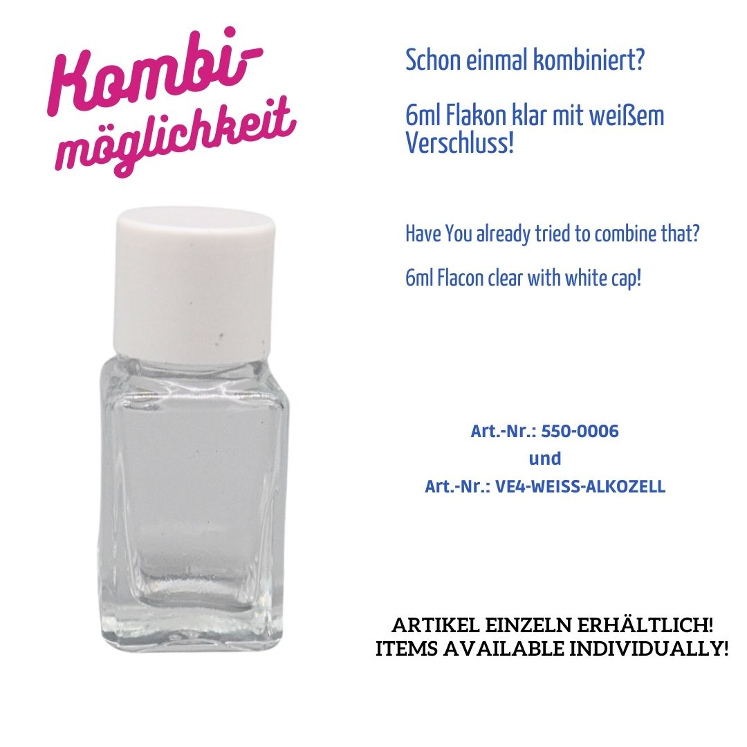 Klein, aber wirkungsvoll: Diese quadratische 6 ml Flasche aus hochwertigem Klarglas kombiniert minimalistisches Design mit maximaler Ausdruckskraft. Ihr kompaktes Format macht sie ideal für Proben, hochwertige Konzentrate, Parfums oder exklusive Pflegeprodukte.