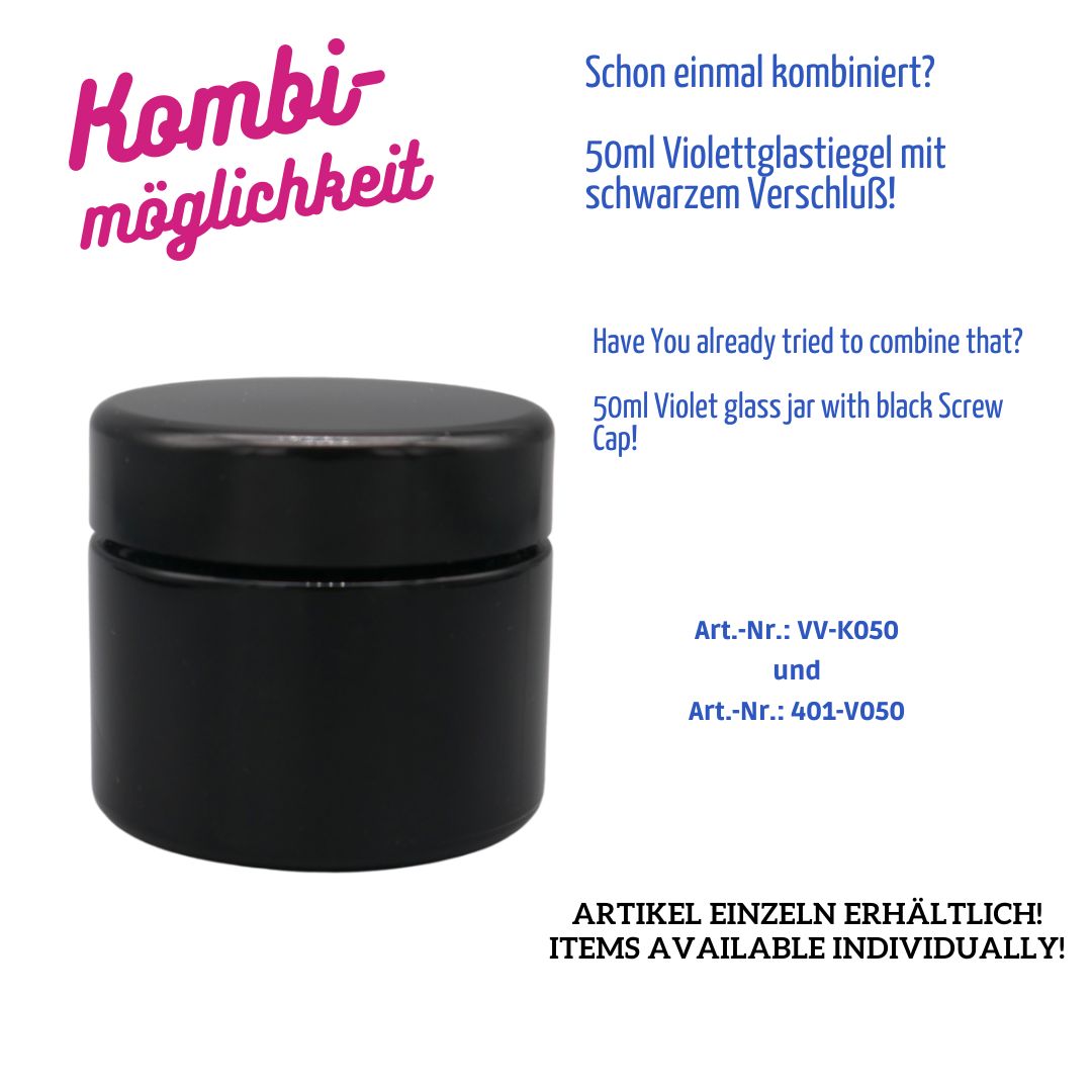 50ml – Violettglasdose – Kosmetikdose – absolutes Lichtschutzglas -m-