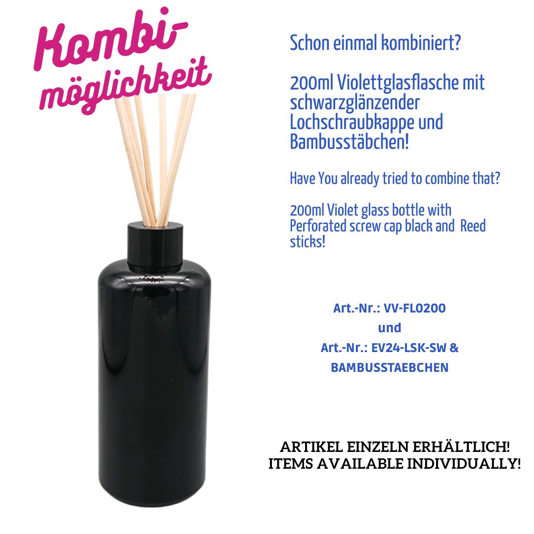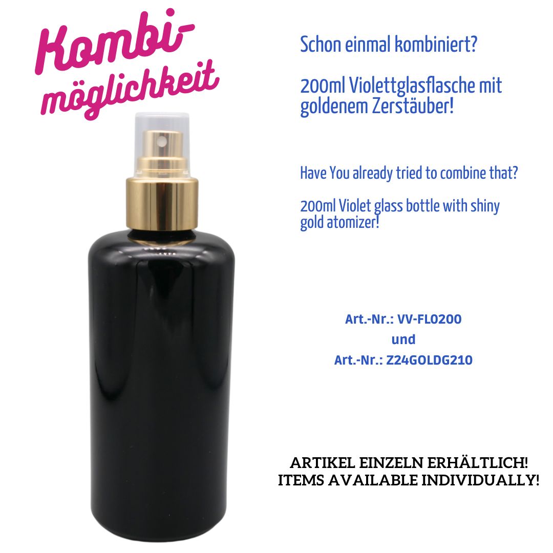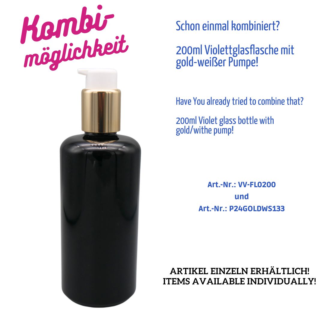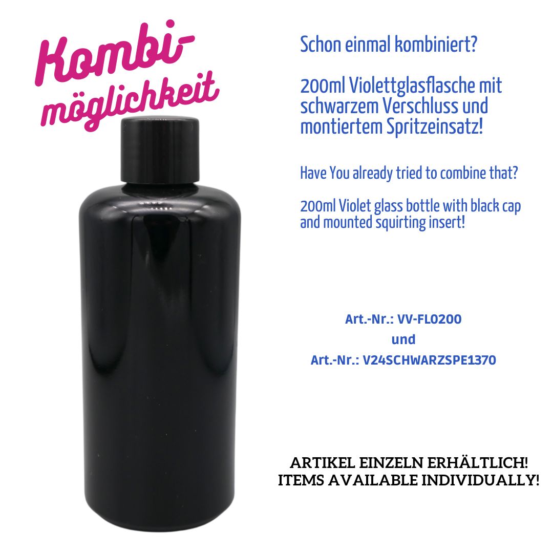 200ml Violettglas-Flasche – Gewinde GCMI 24/410 – Rücklaufnocken – HEIßKALT Vergütung T5