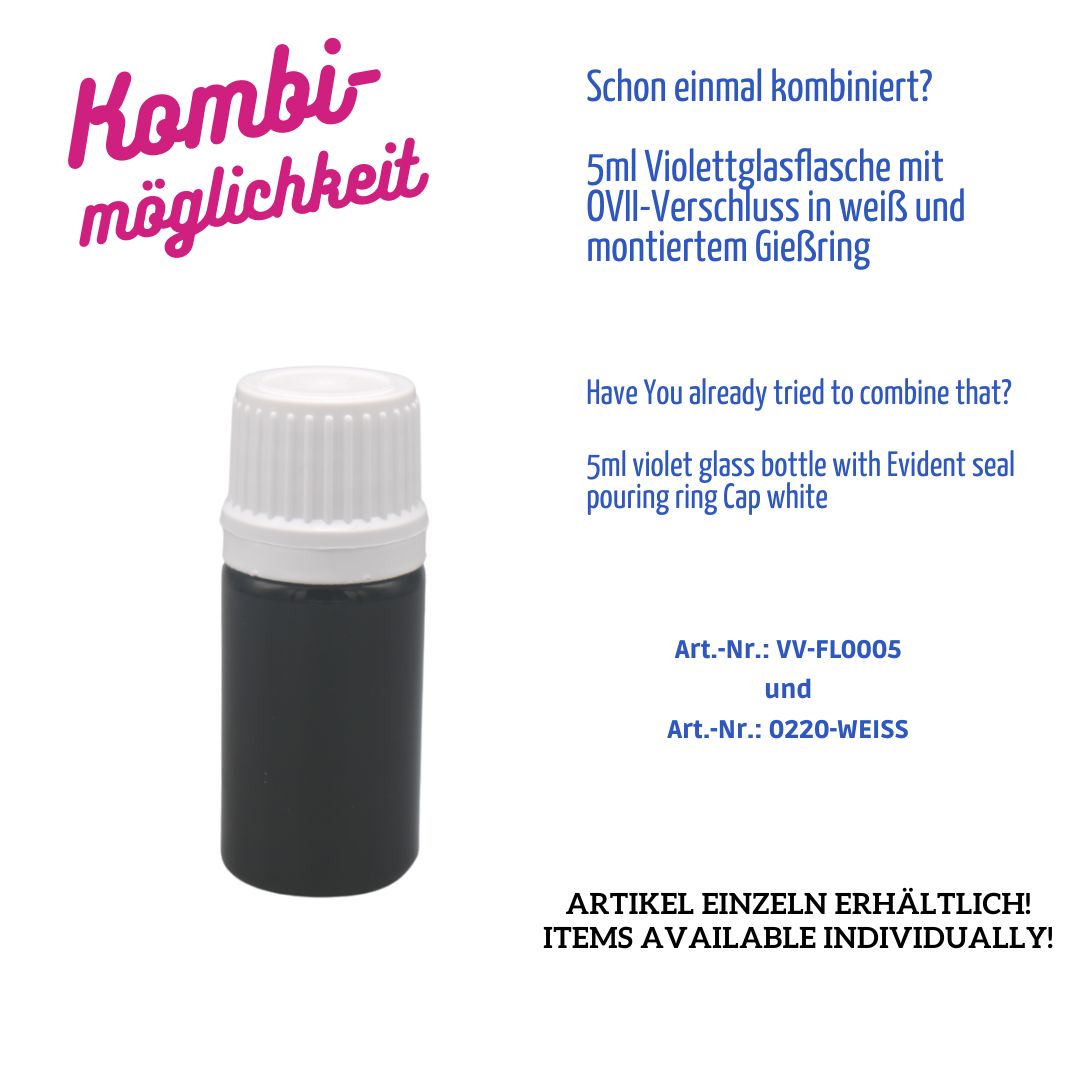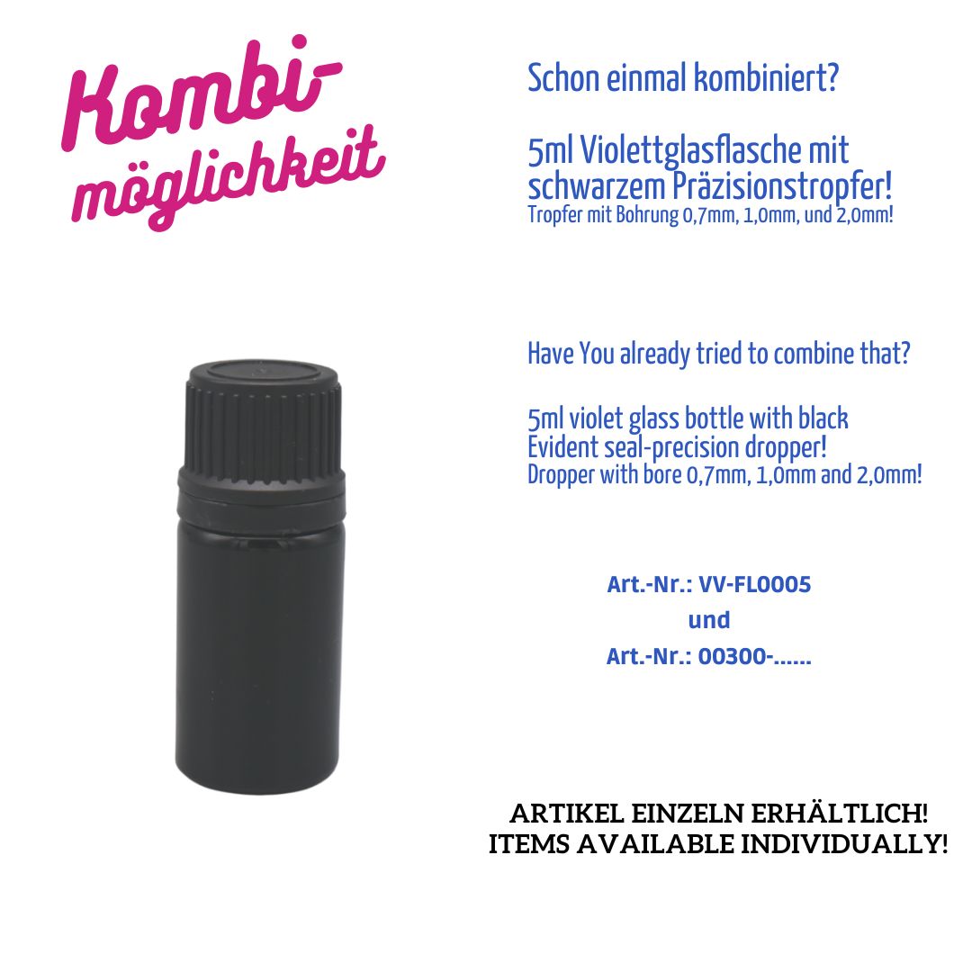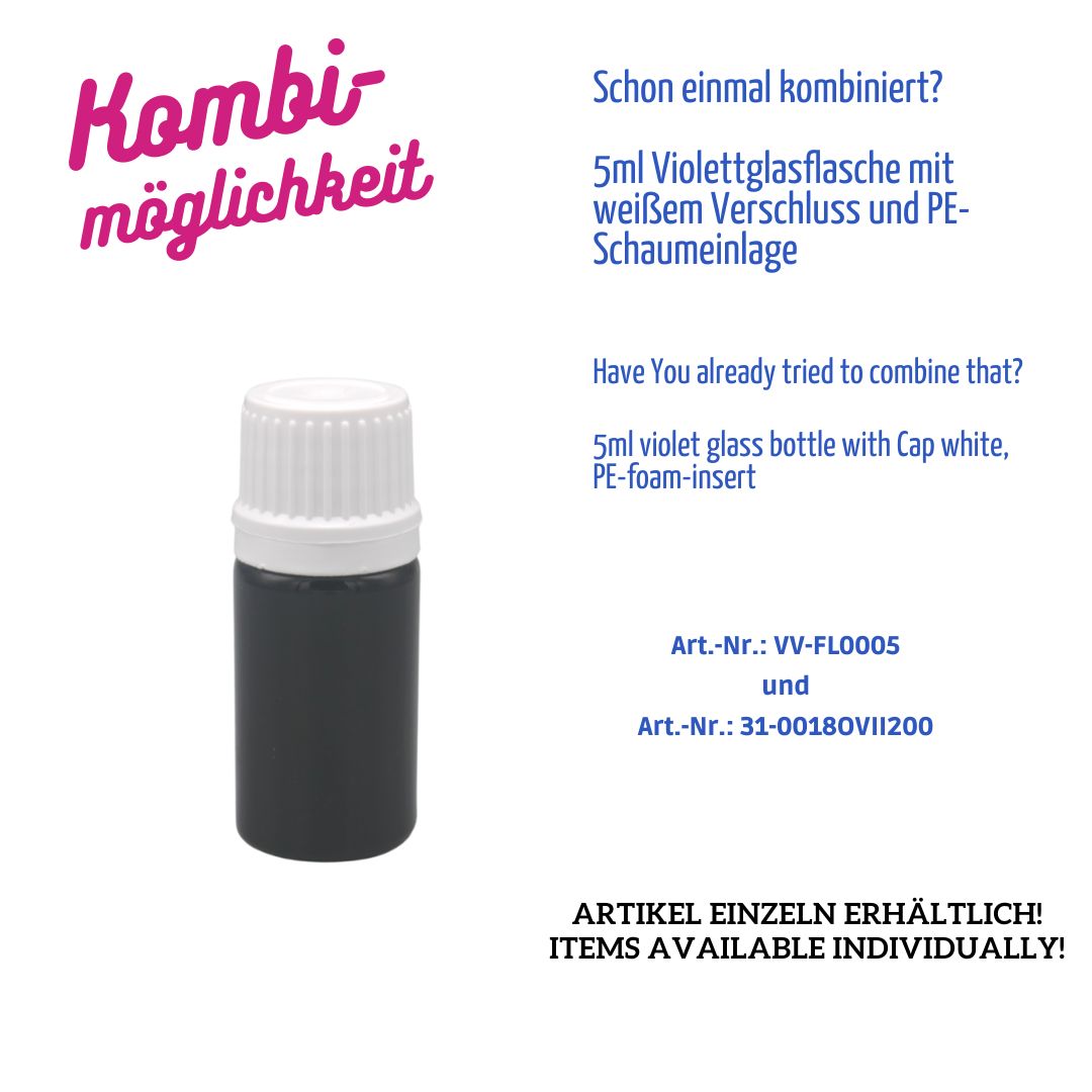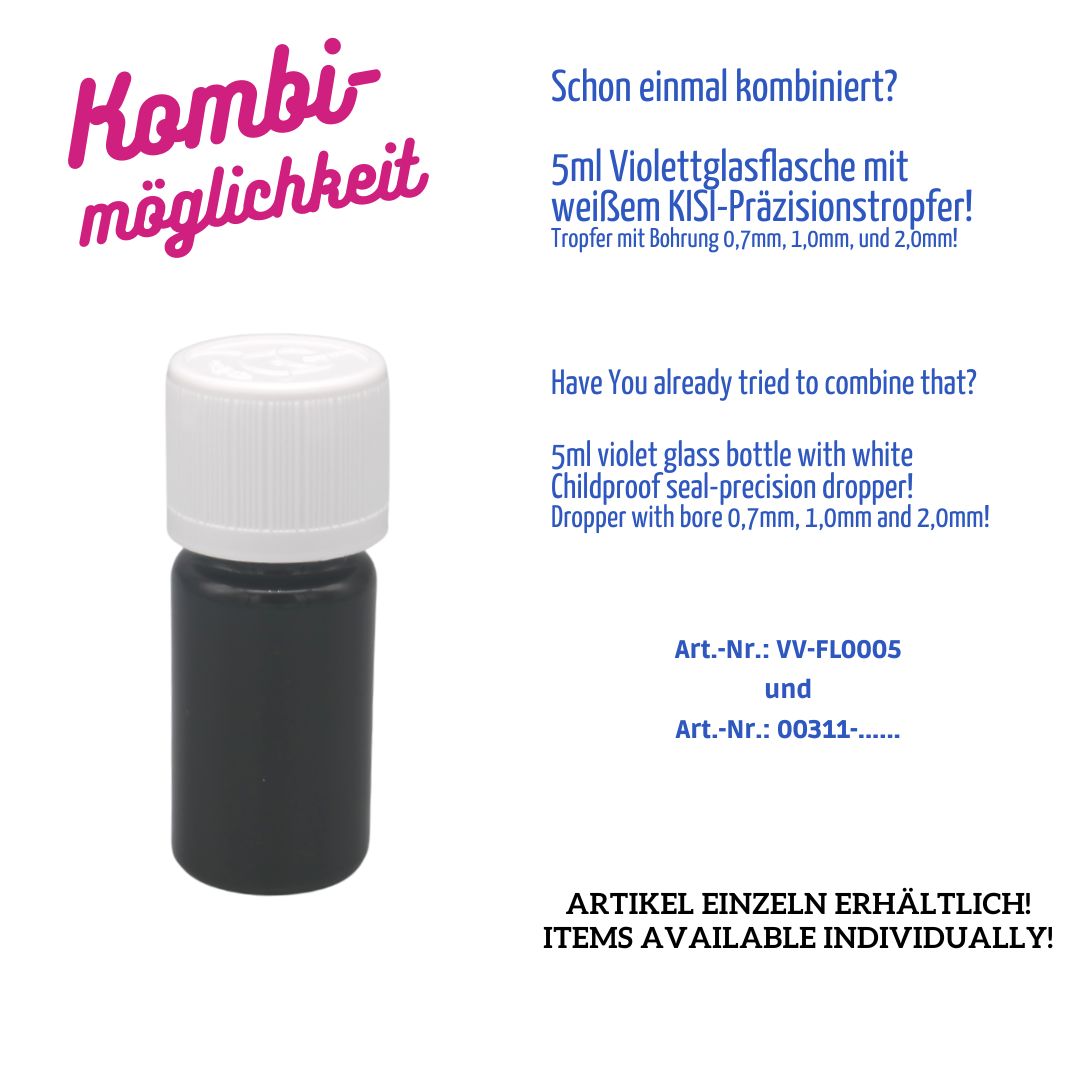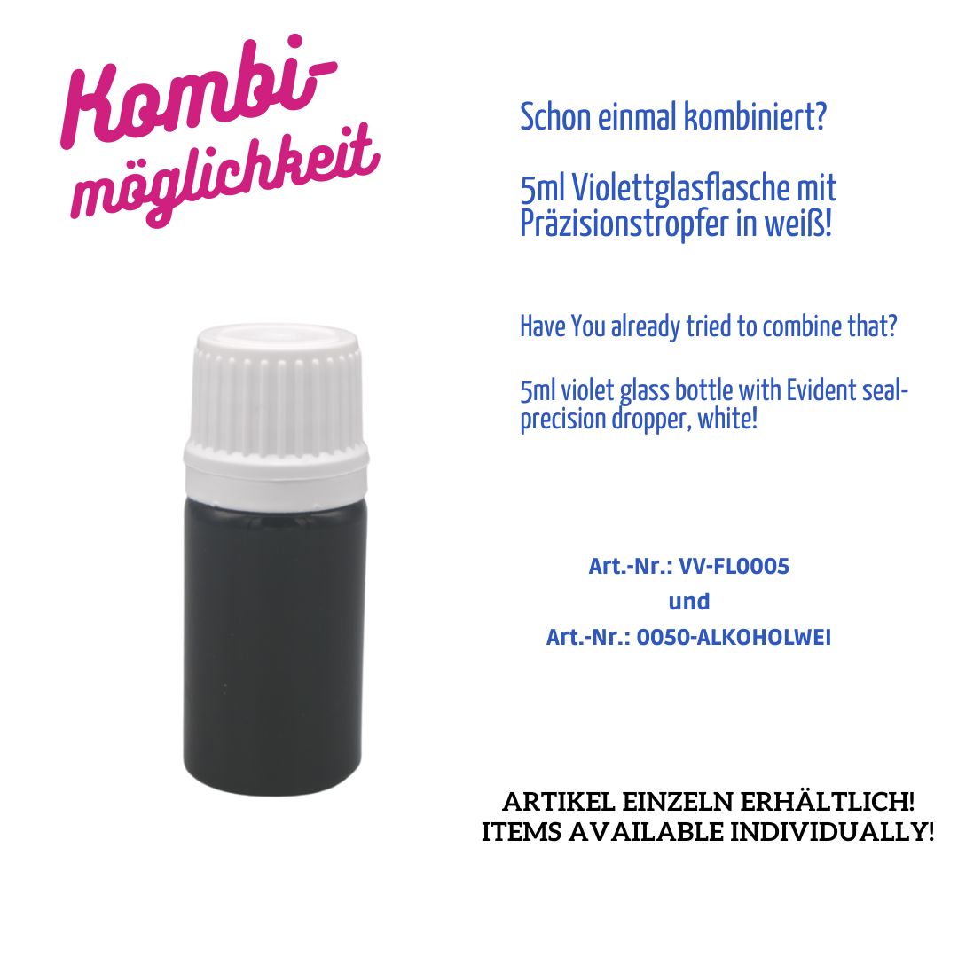 Diese kompakte 5 ml Flasche aus echtem Violettglas bietet absoluten Schutz vor sichtbarem Licht und ist ideal für hochsensible Inhalte wie ätherische Öle, Essenzen, Tinkturen oder pharmazeutische Präparate.