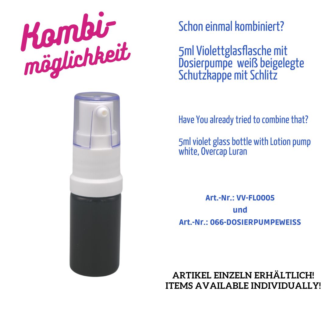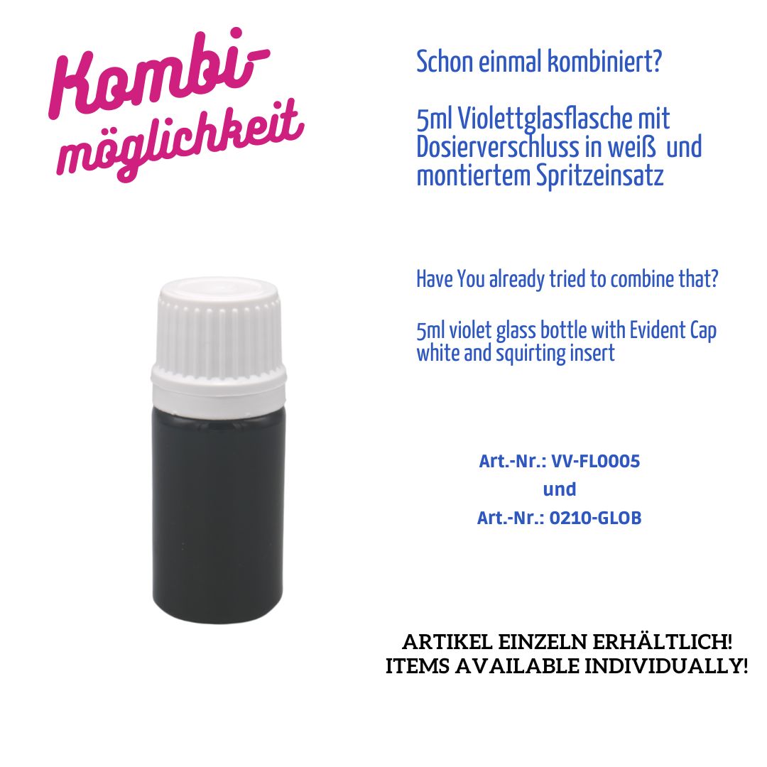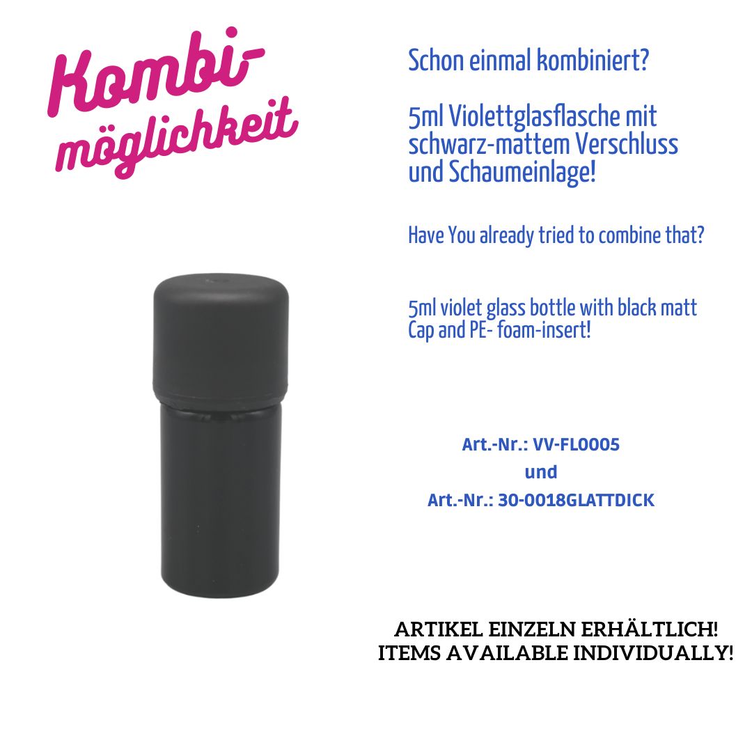 5ml Violettglas-Flasche – Gewinde DIN18 – Rücklaufnocken – HEIßKALT Vergütung T5